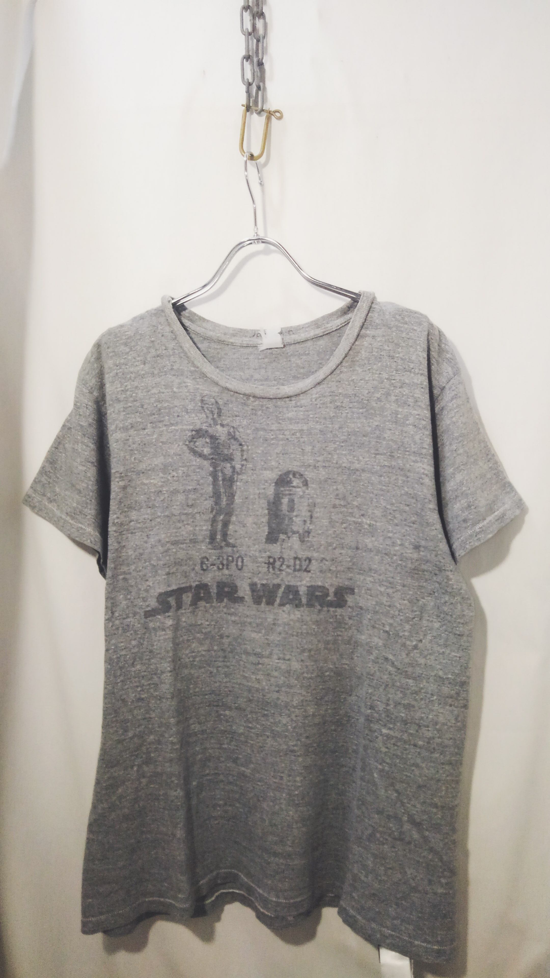 フェード感のあるプリントでフロントにはスターウォーズではお馴染みのC-3POとR2-D2の名コンビがプリントされています。