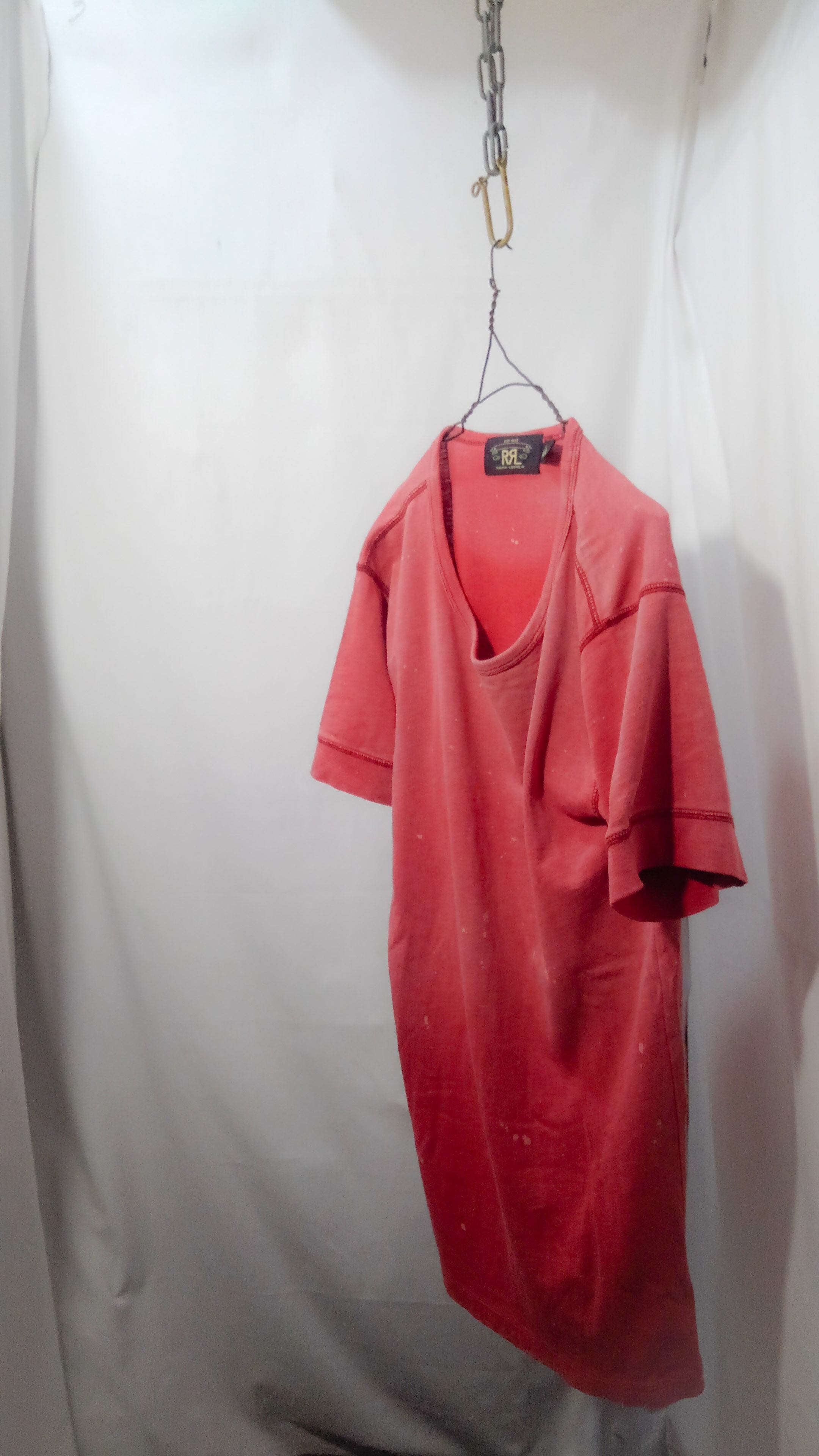 ダブルアールエルの袖リブの付いたビンテージ加工Tシャツです。