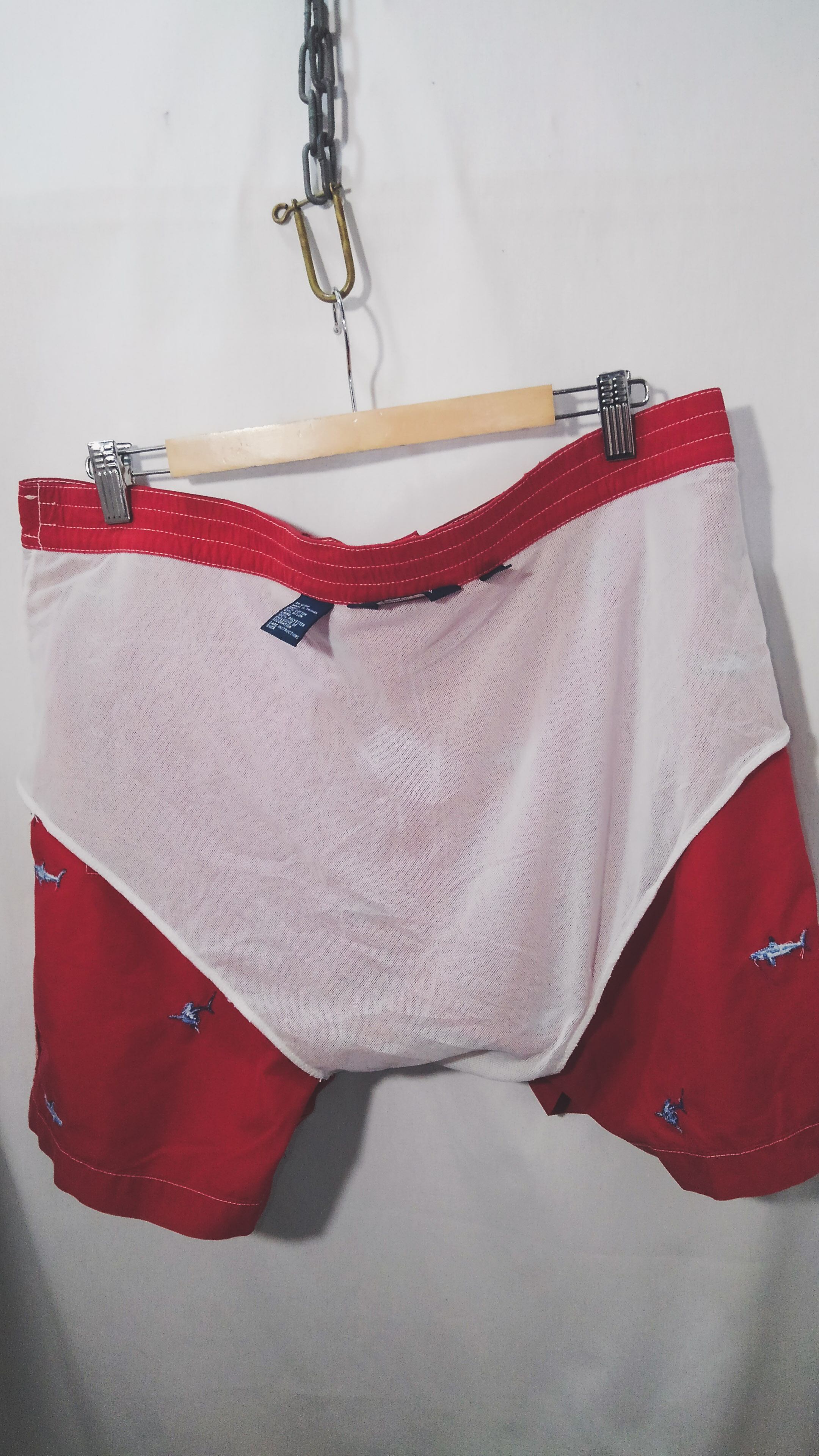レッドカラーにラルフローレン定番のシャーク刺繍の総柄。