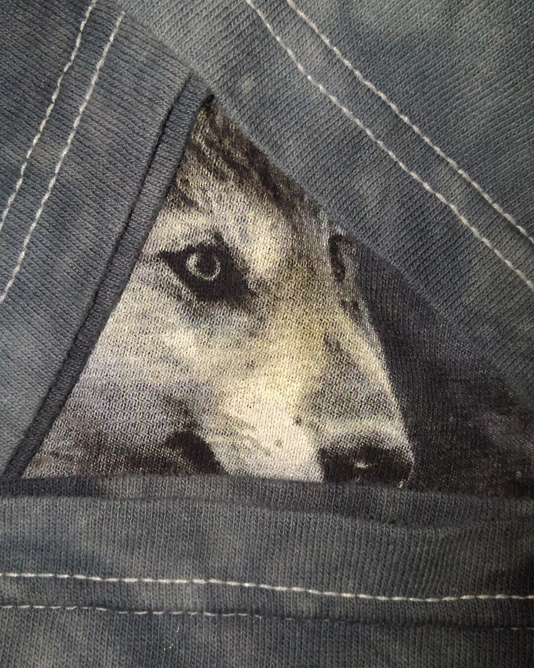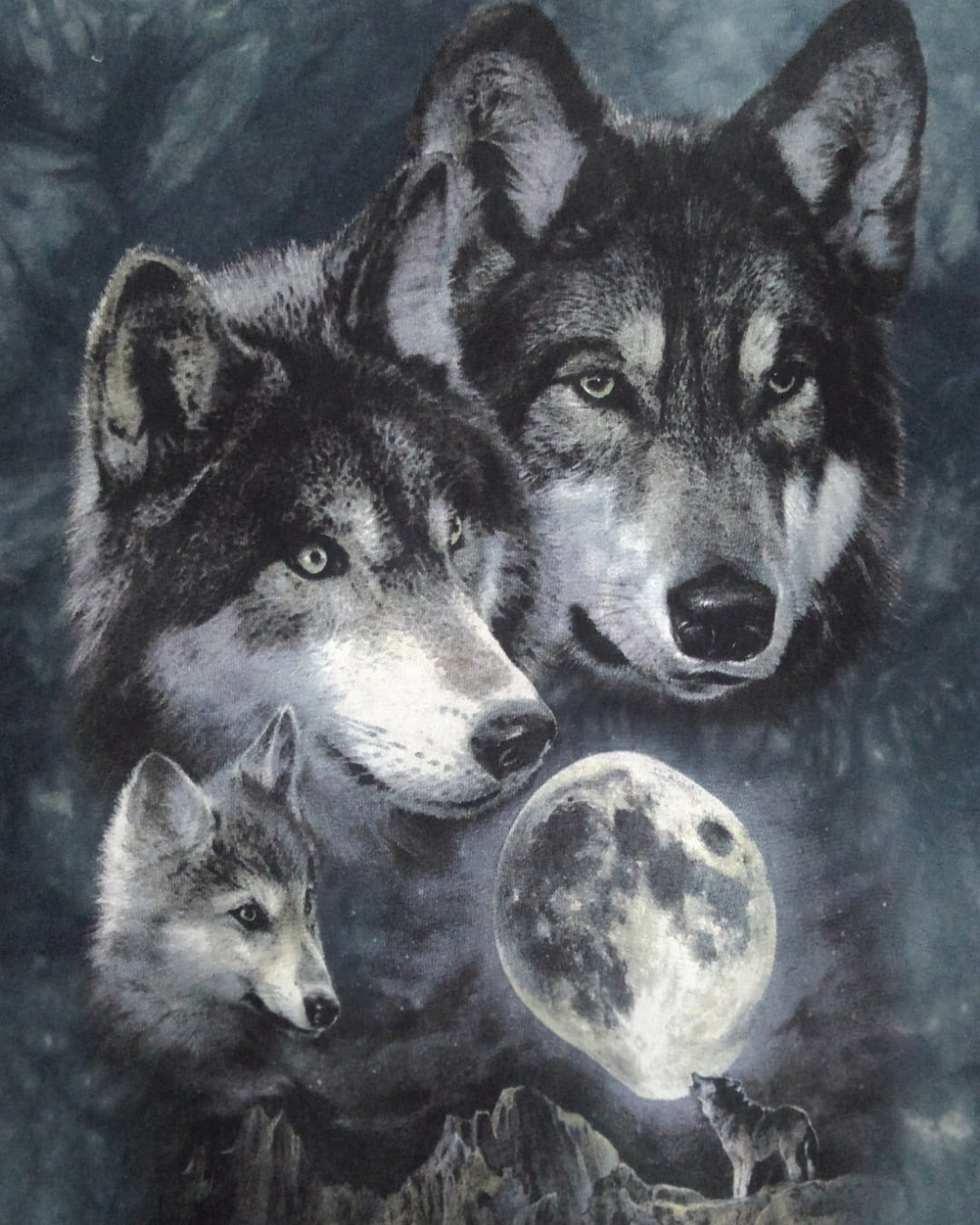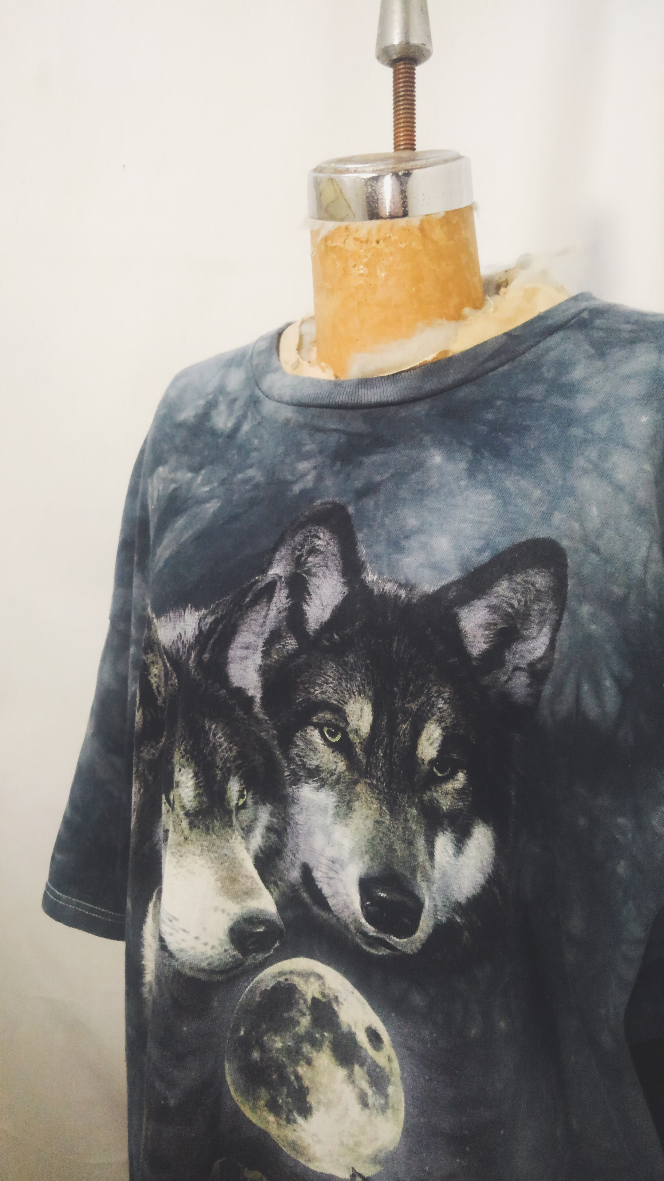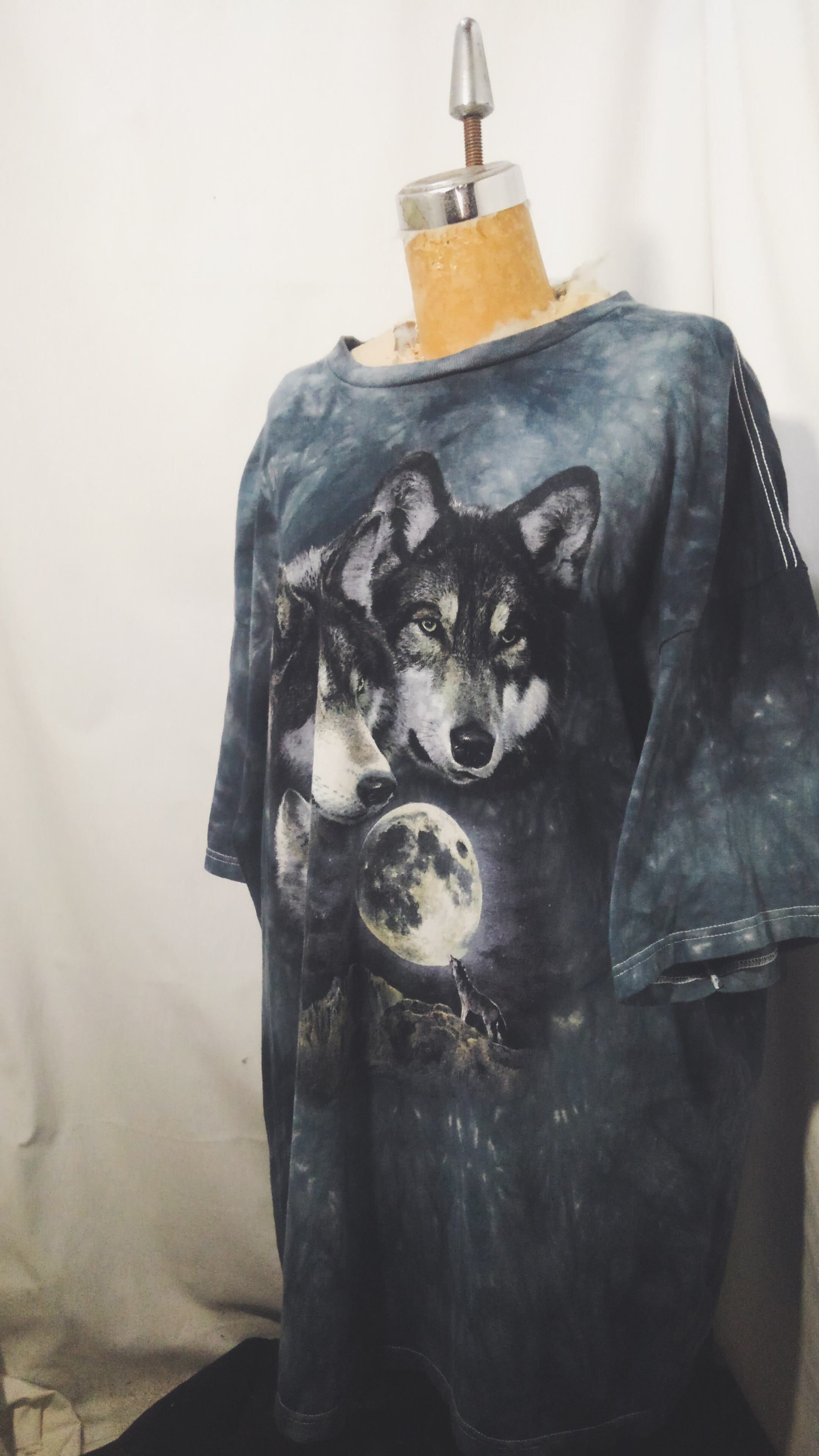 月夜に浮かぶオオカミのプリントにベースとなるタイダイボディの色合いがマッチしています。