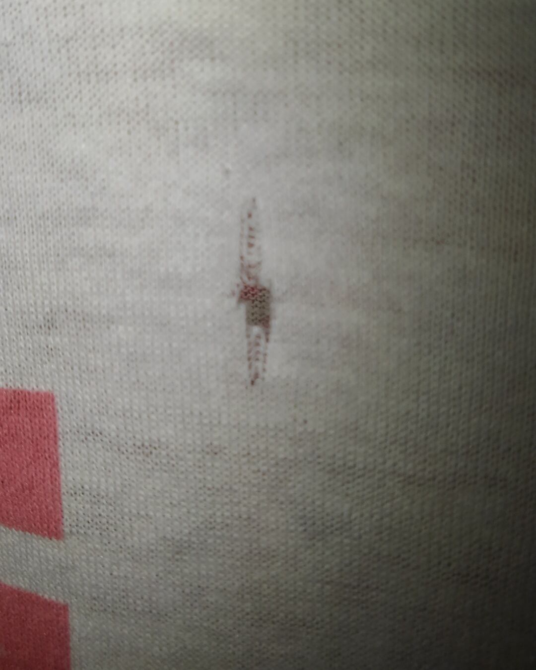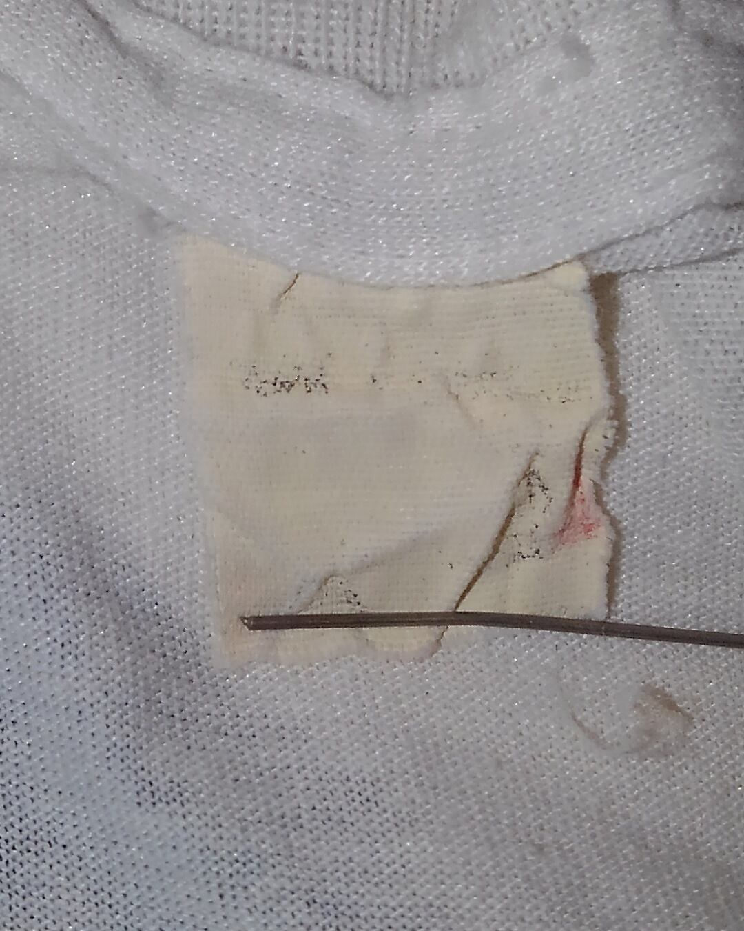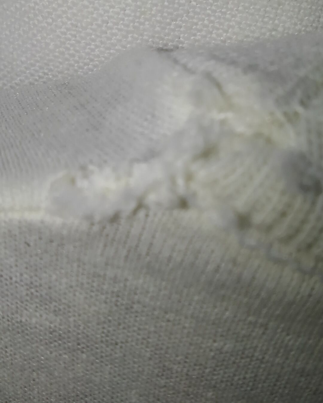 左胸辺りに5mmほどの小さな穴があり、左肩付近にリペア痕がありますが、重ね着などすればそれほど気にならないかと思われます。