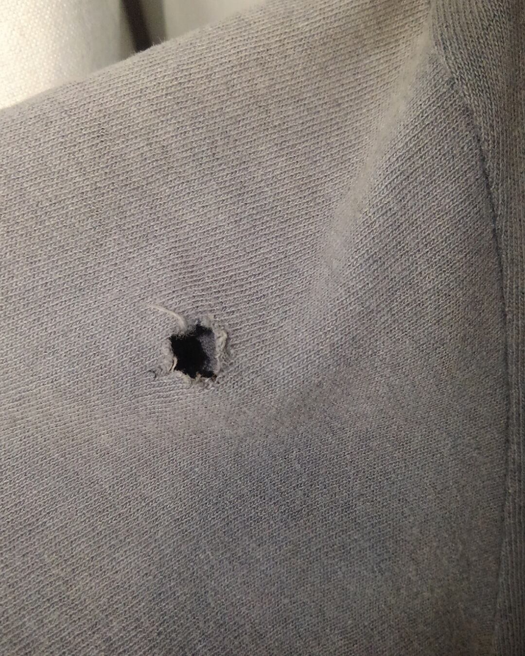 右腕辺りに7mmほどの穴があり、バック腰辺りに2~5mmほどの穴が4つ目視で確認出来ます。