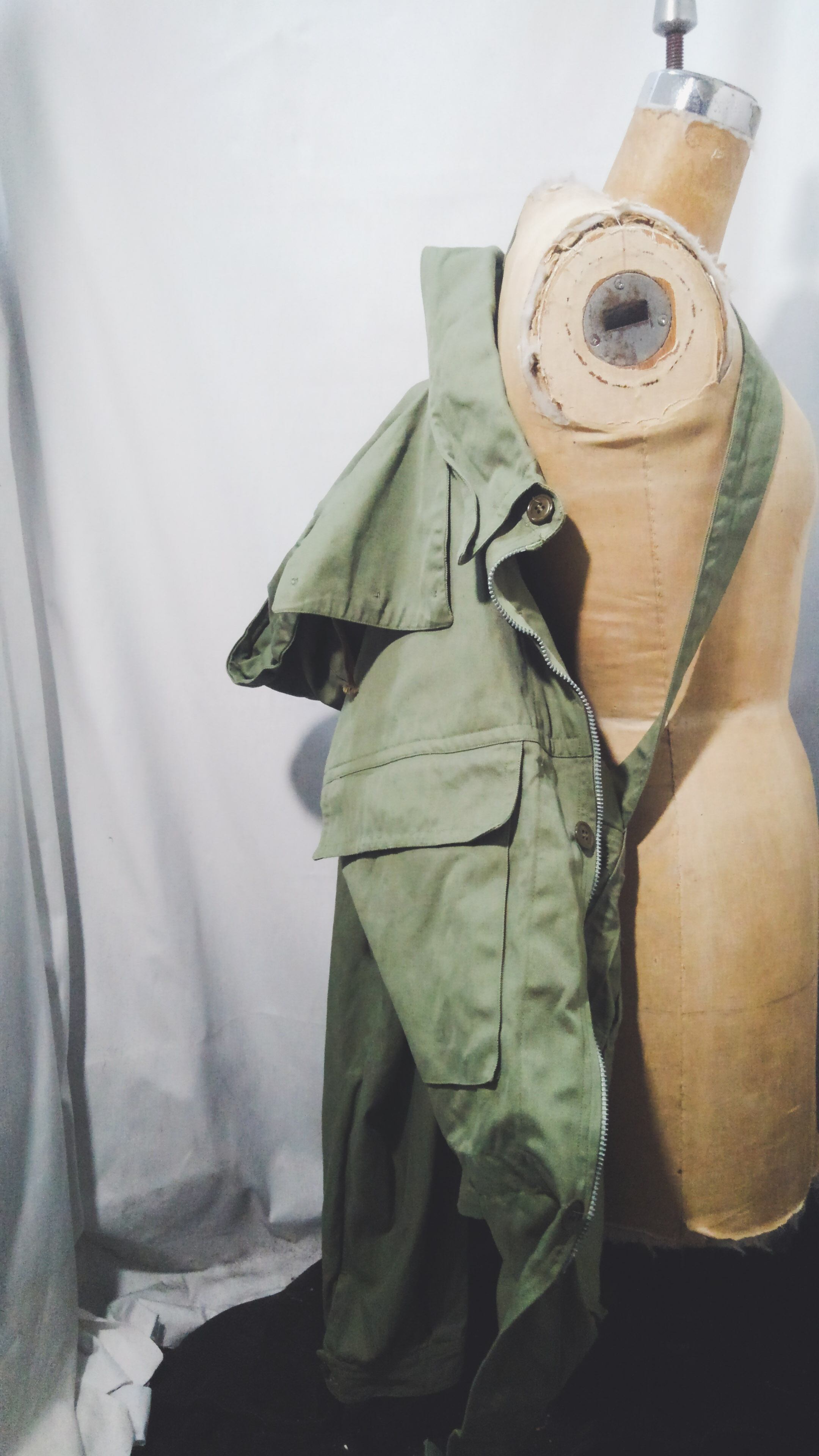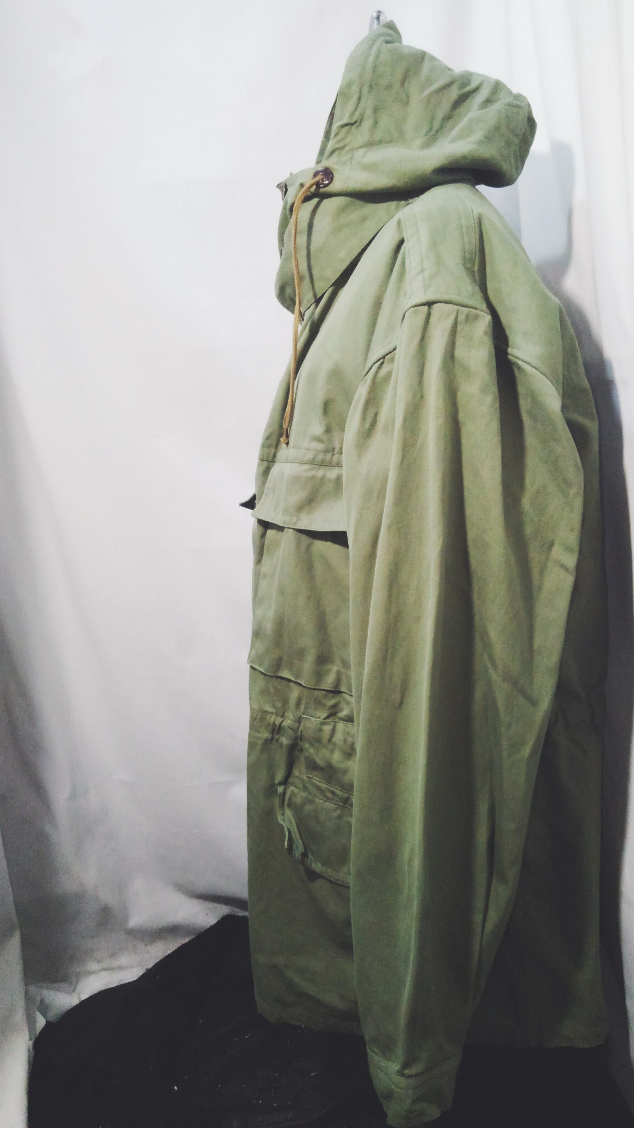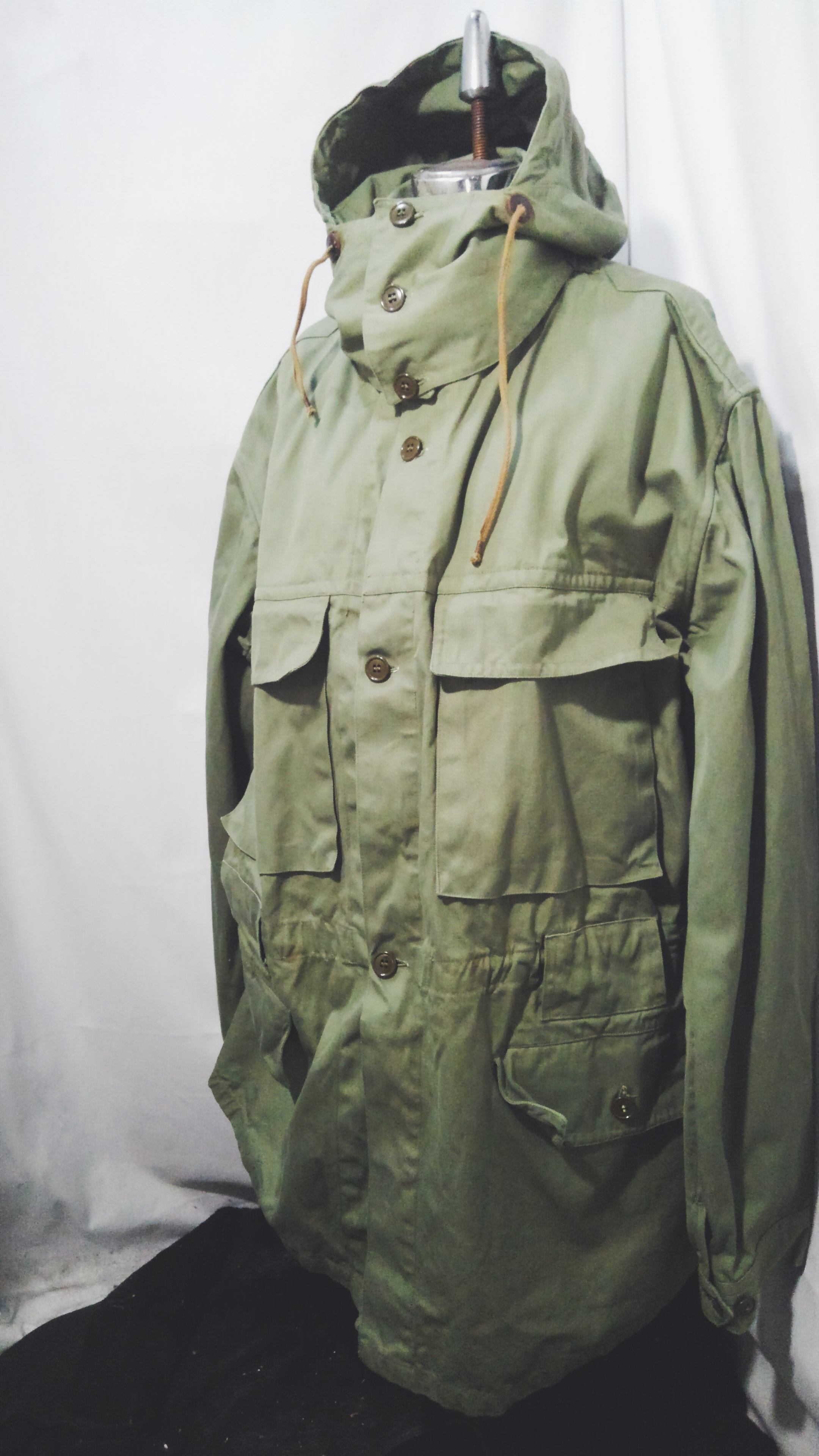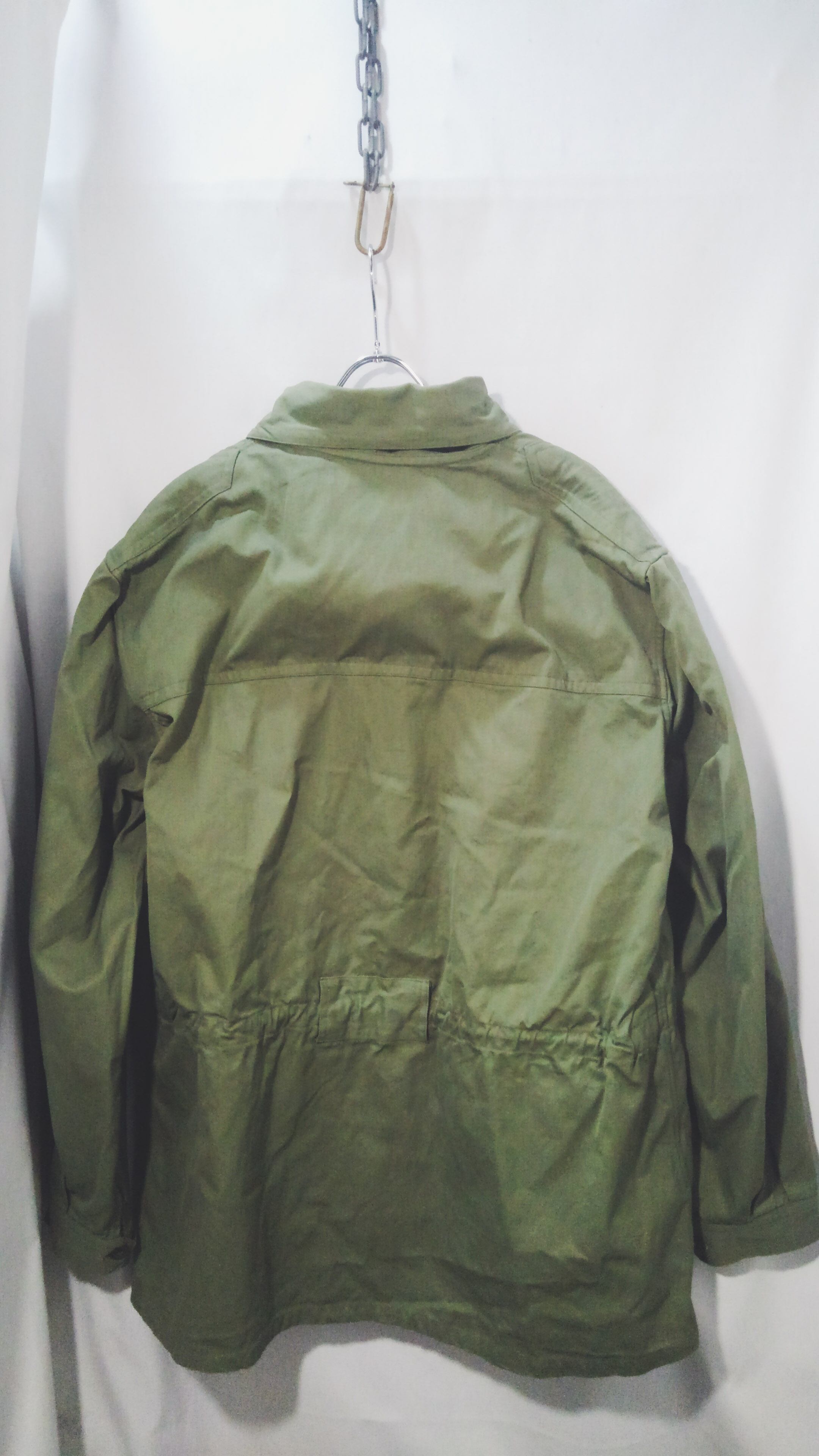フードも背面に収納可能でウエストのシェイプ感はイタリア軍が多用する作りでウェストベルトは欠損していますが、ドローコードでシェイプ出来、軍物らしい多機能なアイテムです。