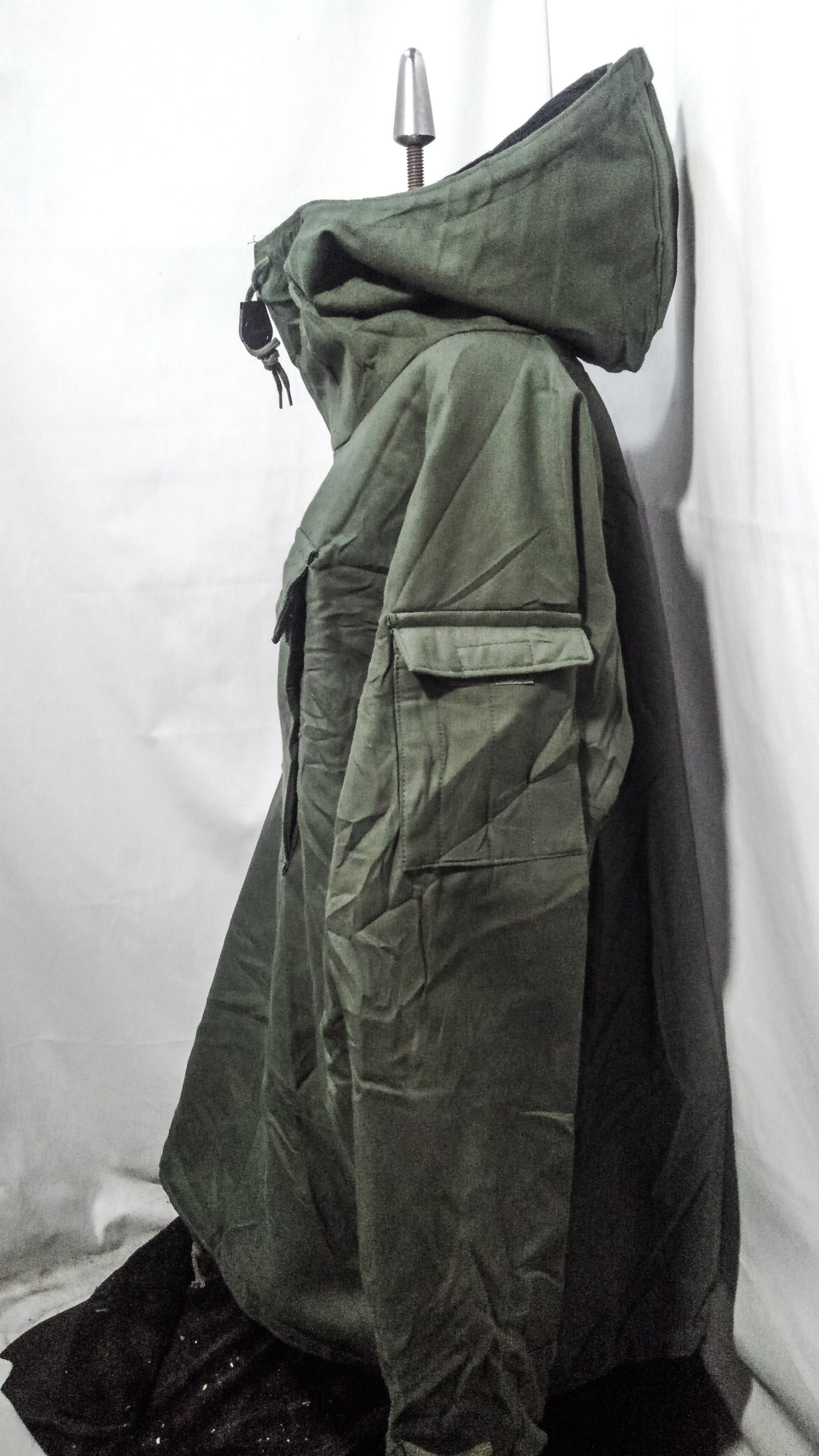 素材はコットンポリ、二重構造で対科学兵器対応の為に裏地はカーボンが張っており、風を通さない生地感ですので風の強い日や自転車やバイクに乗る時なども便利かと思います。