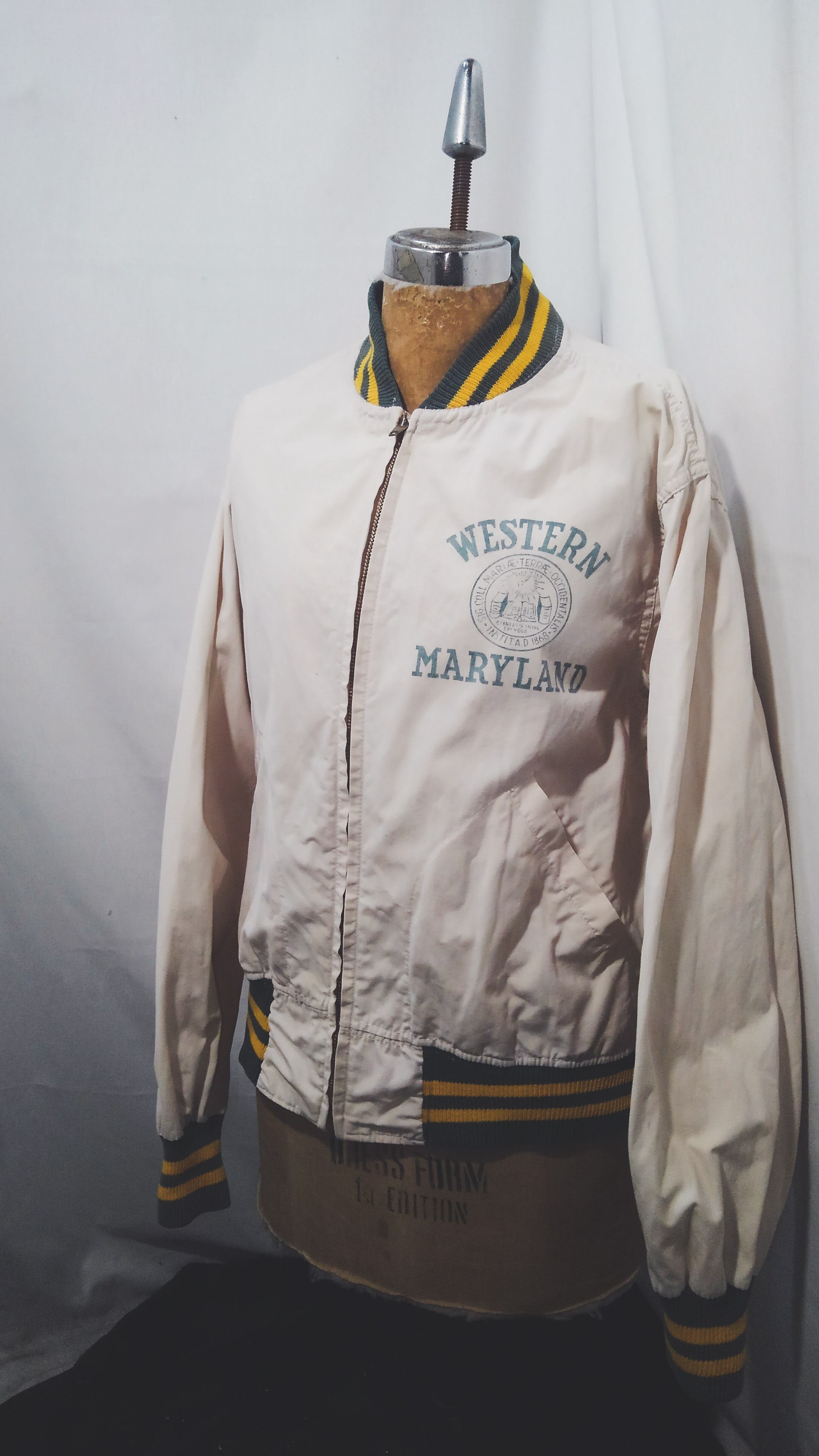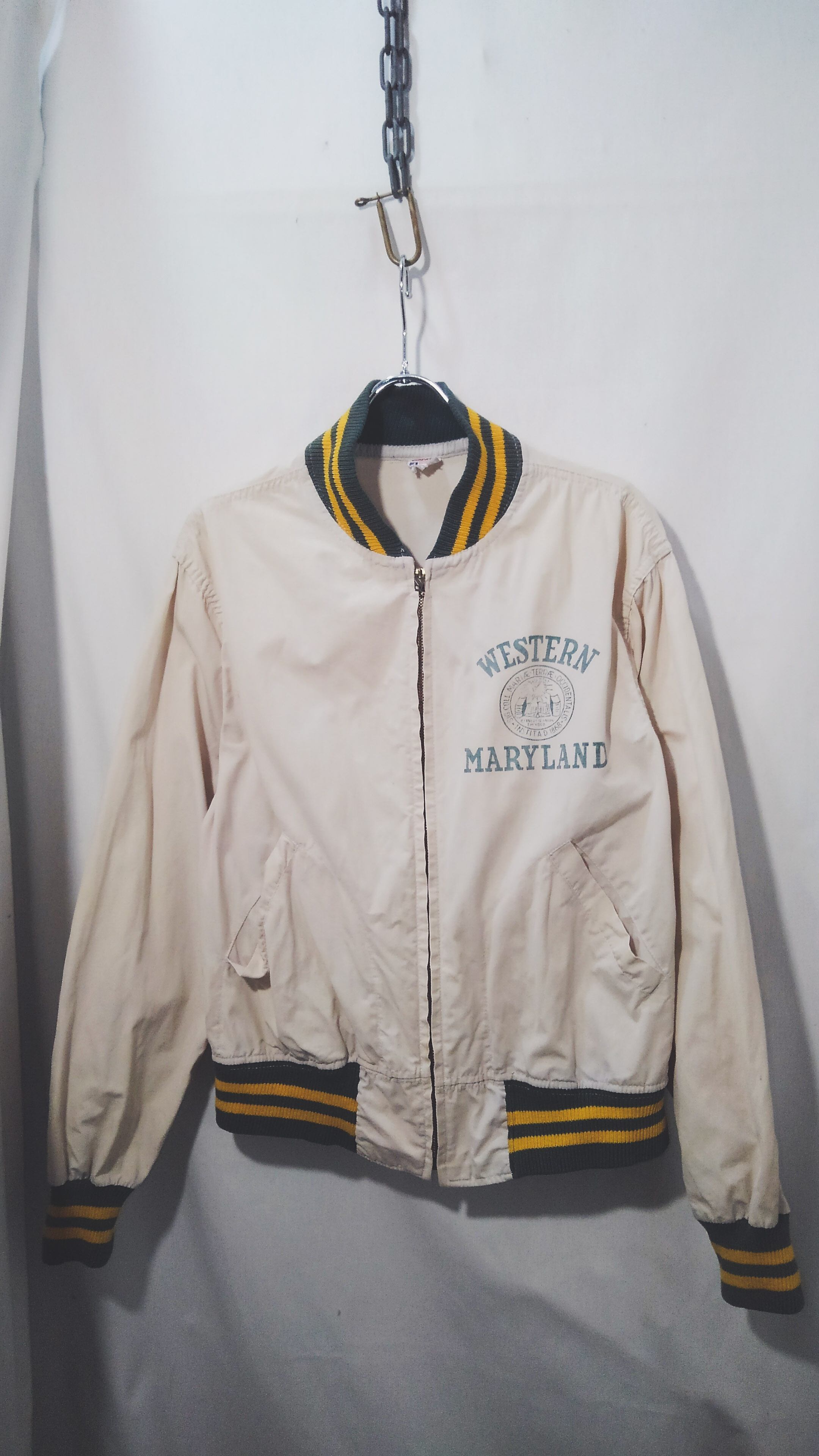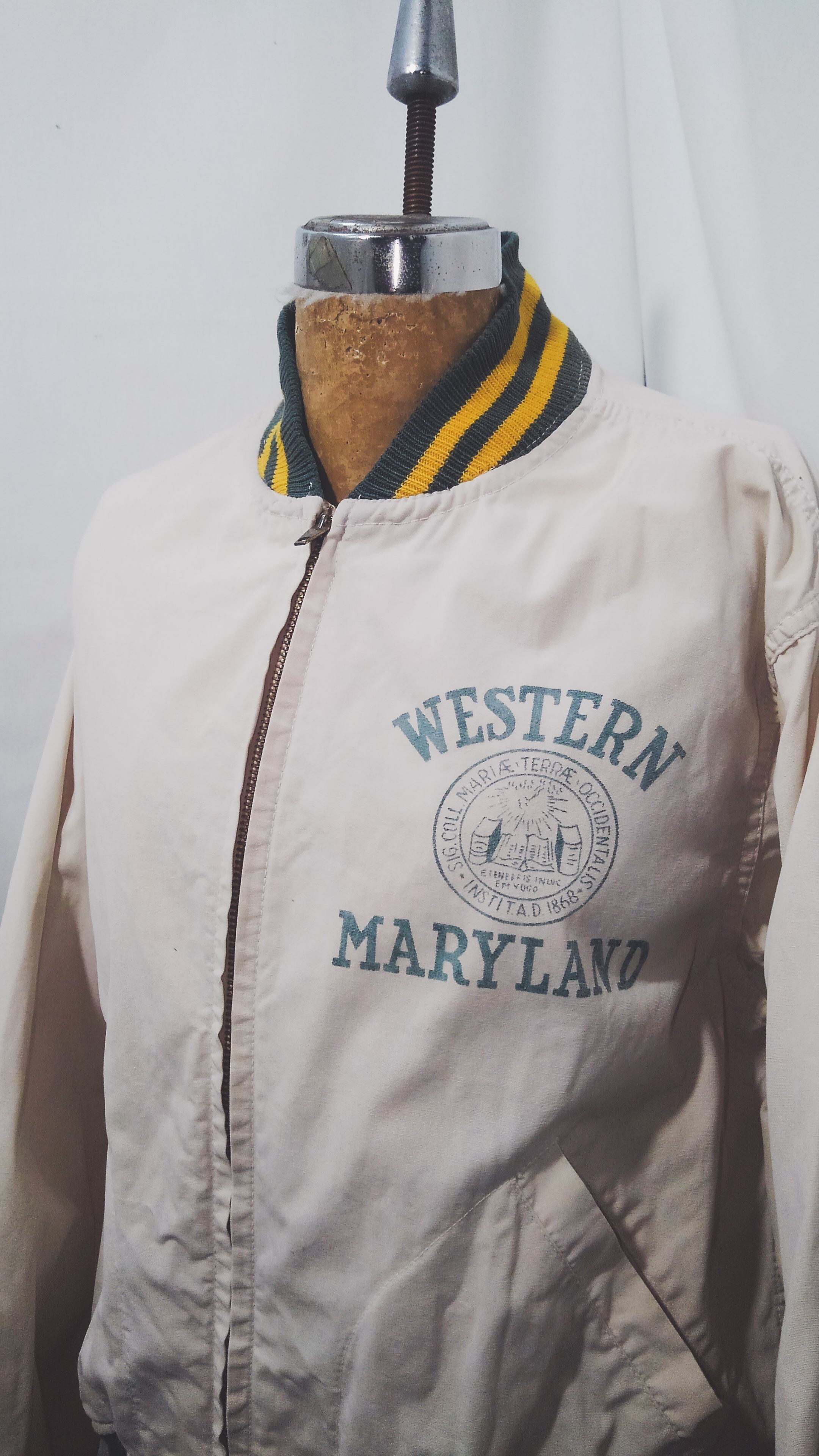 3段プリントで上下に「WESTERN MARYLAND」の文字に挟まれたラテン語のサークルロゴ。