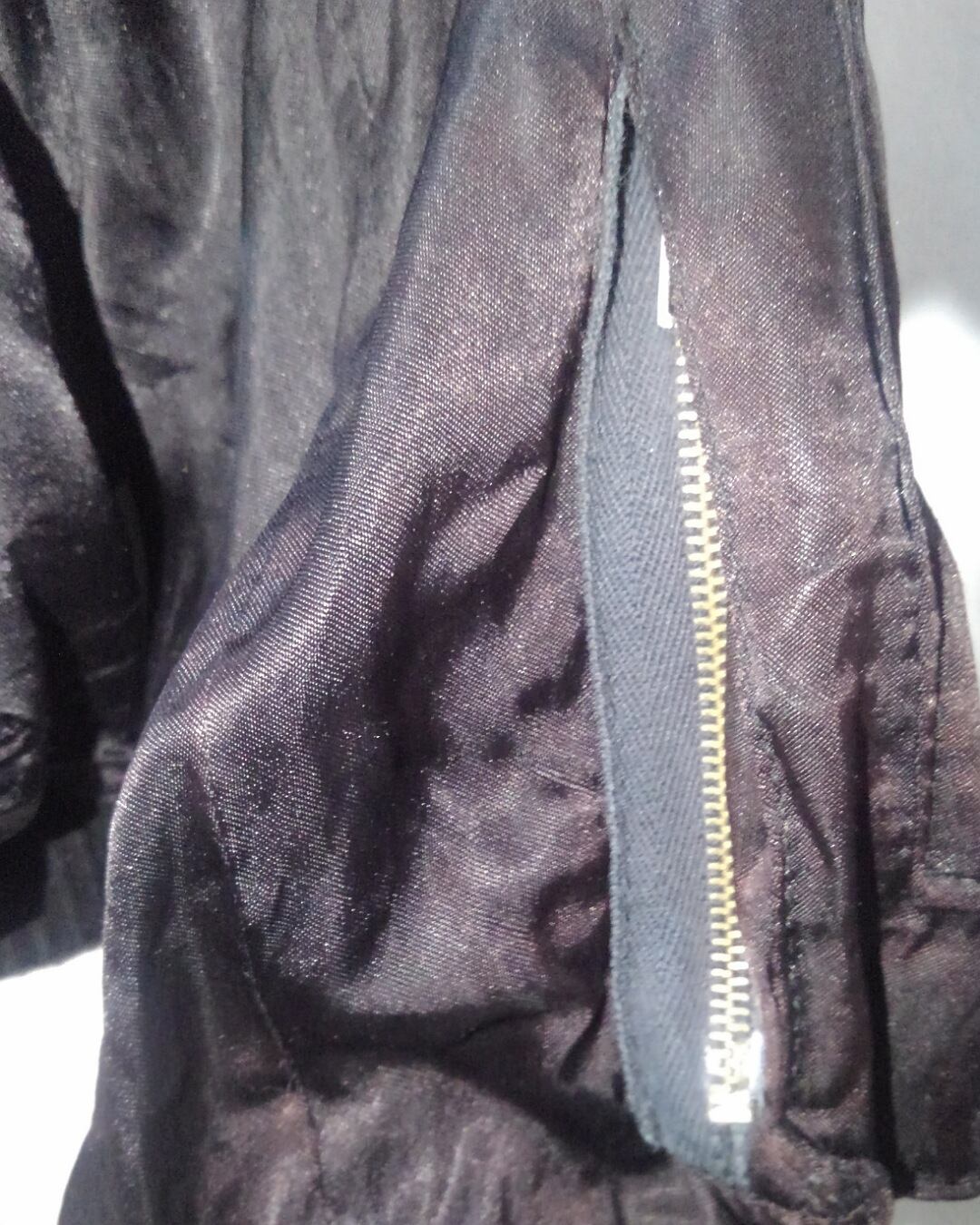 サテン生地特有のシワはありますが、フロントジップ以外、リブ回りも良好で大きなダメージや目立った汚れはございません。