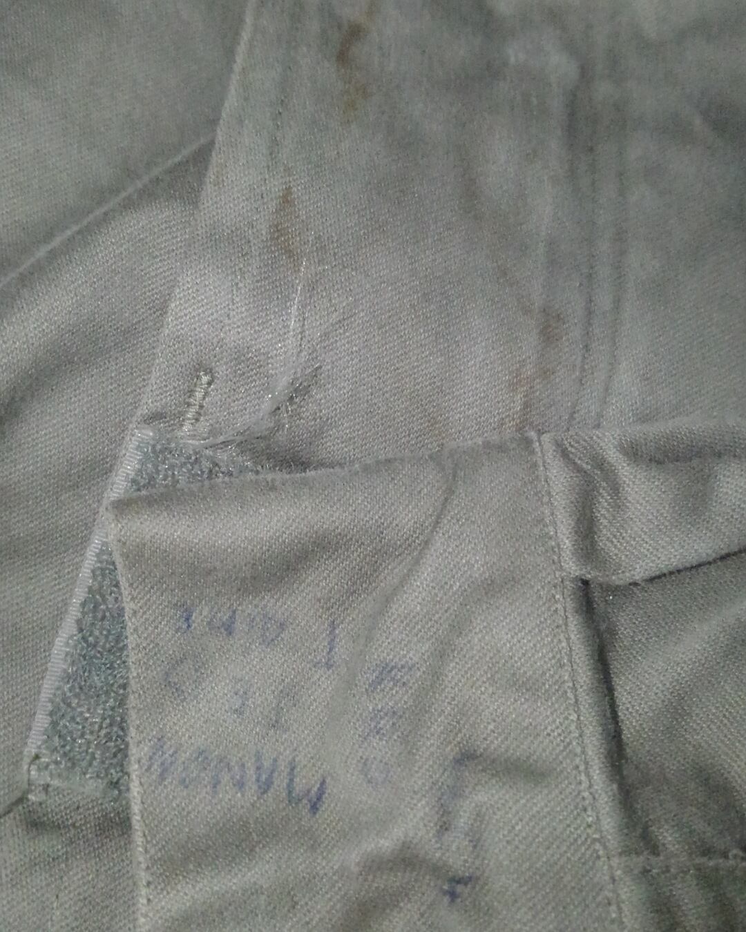 フロント中央部分のオイルジミや左袖の落書き、ライナーボタンの上部2つが割れていますが、普段使いに支障はございません。