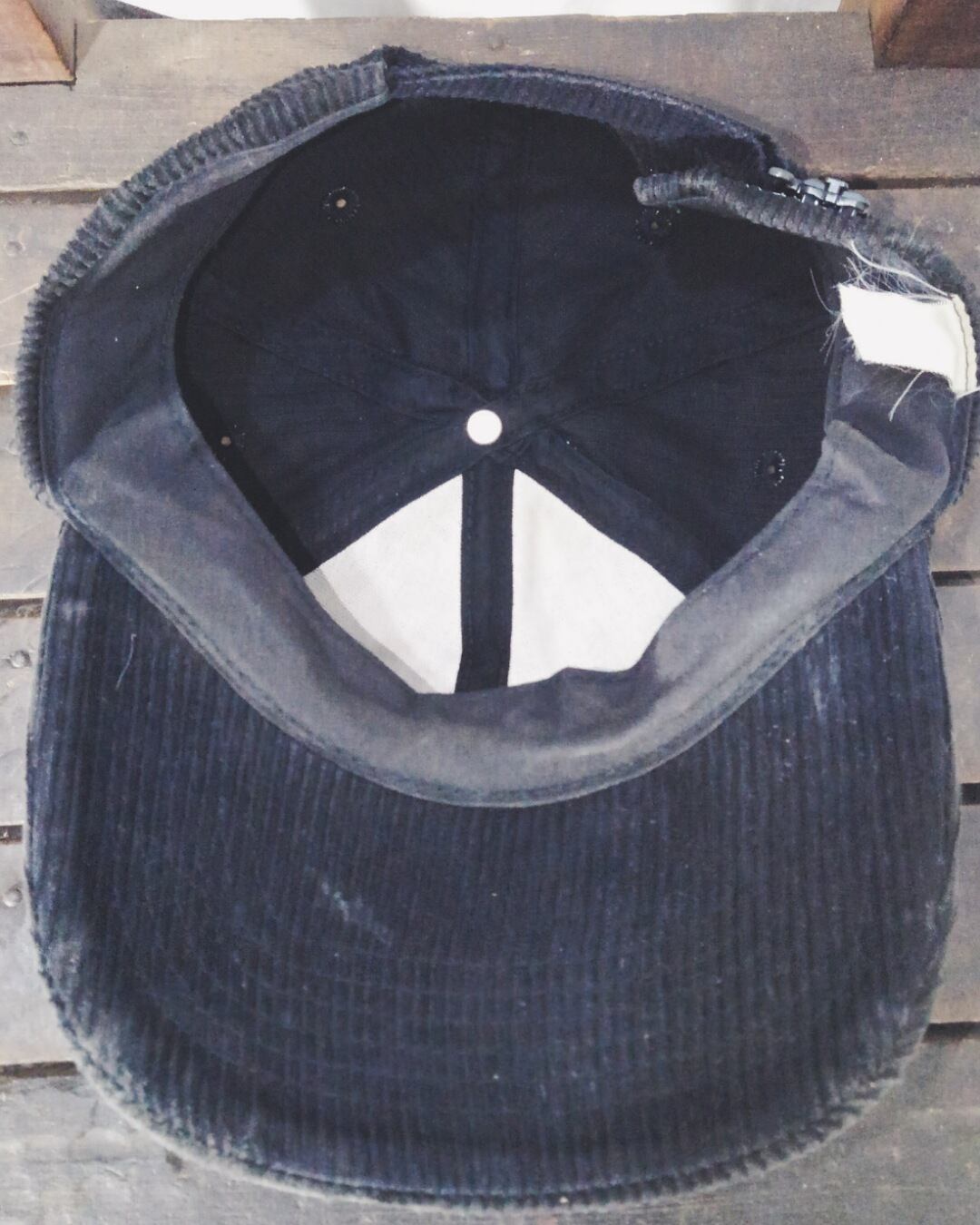 バイザー部分に一部破れがあり中の芯が見えていますが、生地と同系色なのであまり目立たなく普段使いにあまり支障はないかと思われます。