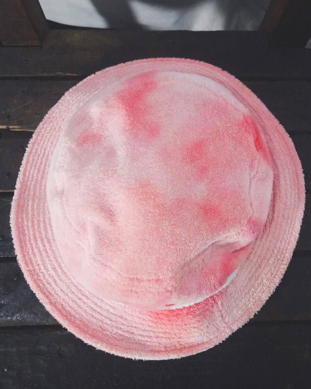 B面も元々は赤色だったと思われ、こちらもブリーチによって淡いピンク系の色合いに変色しています。