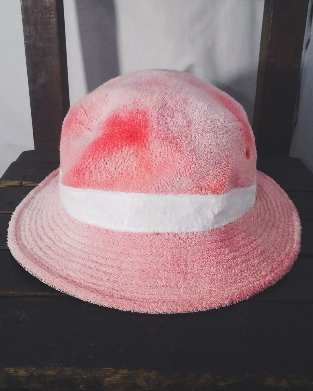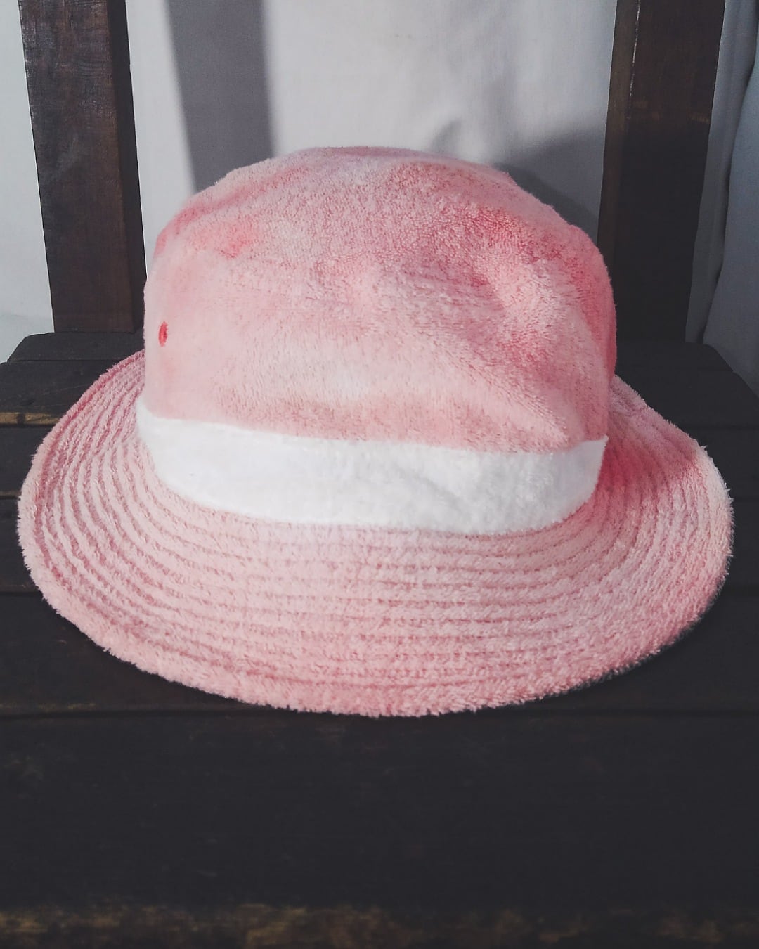 帽体、ブリムがピンク、リボンがホワイトの二色使い。