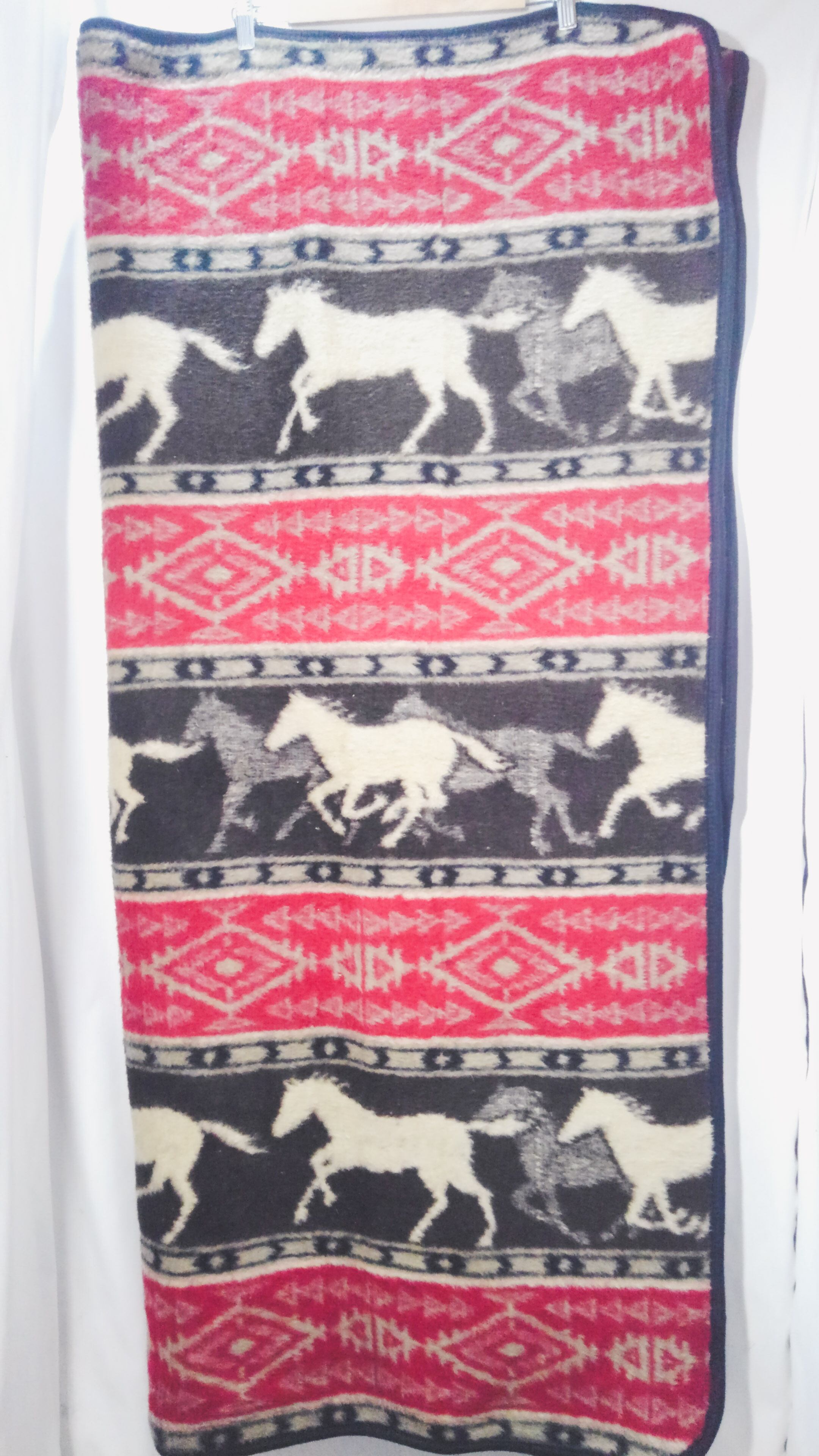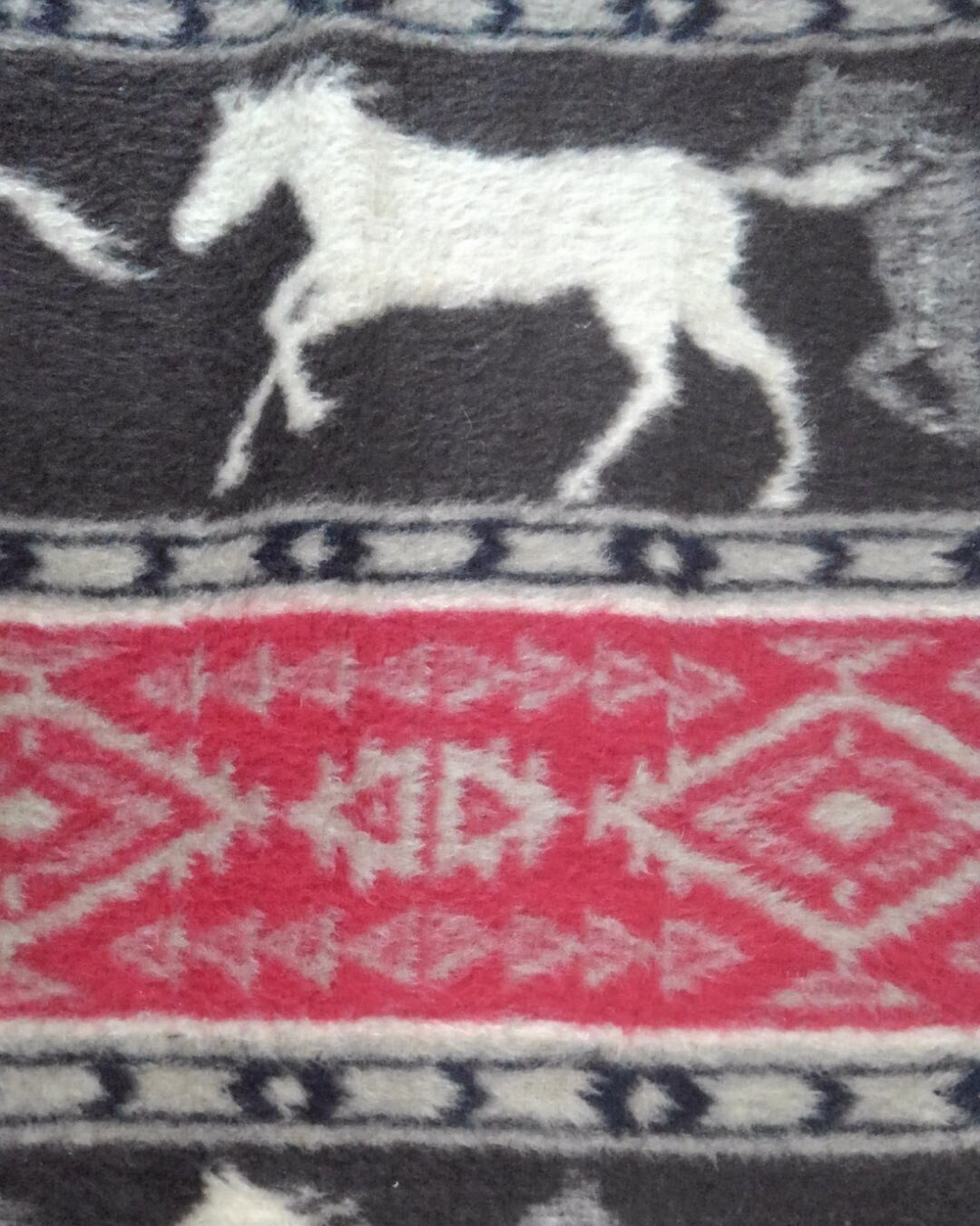 ネイティブ柄の様々なアニマルデザインを基調としたブランケットがありますが、こちらは80年代頃に販売されていたホースプリントの復刻になります。
