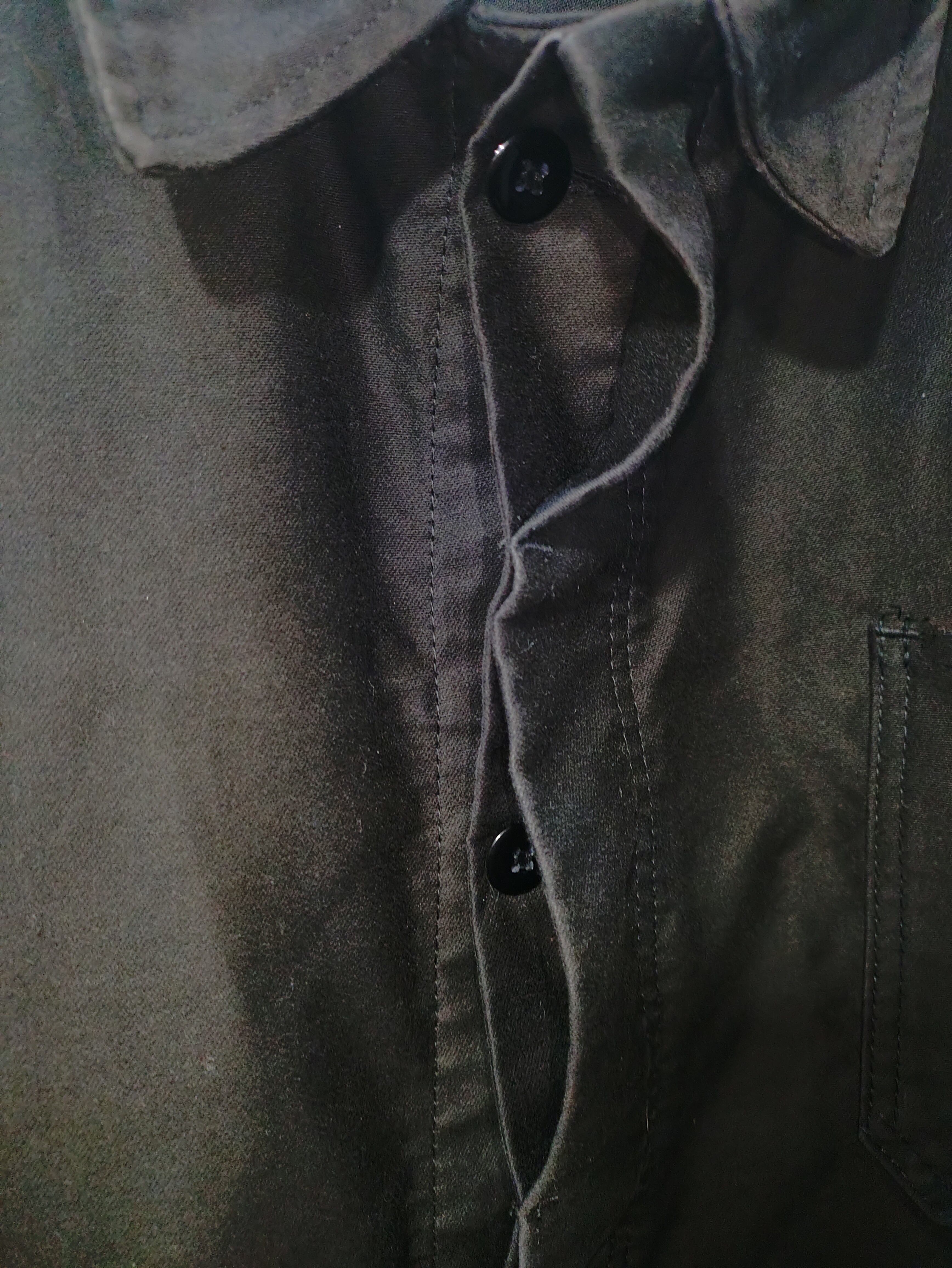 比較的現行に近いタイプのモールスキンジャケットで、ディテールとしてはビンテージのモノとは異なり、フロントボタン袷の部分が比翼仕立てになっています。
