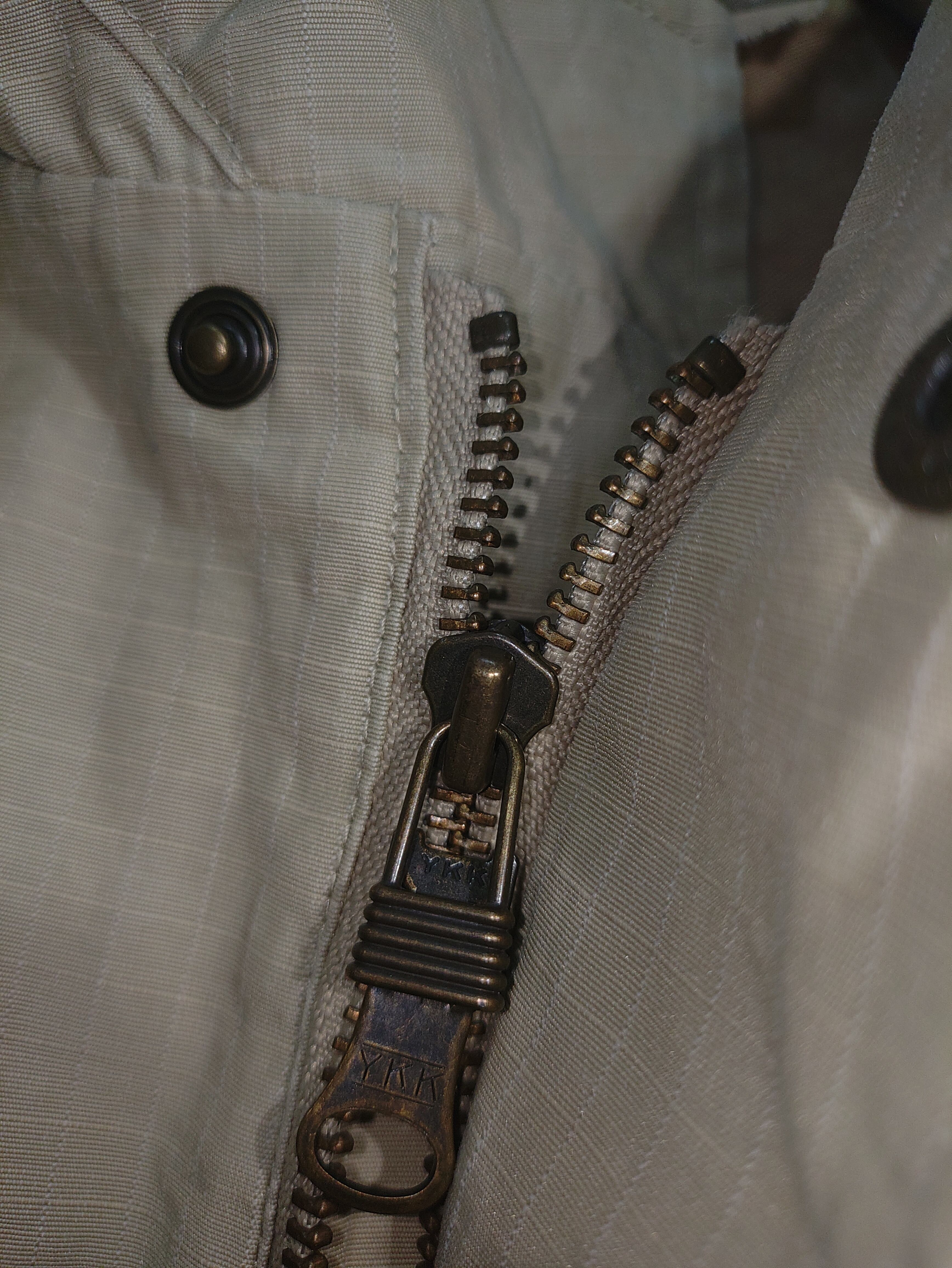 フロントはダブルジップとスナップボタンの比翼仕立て。