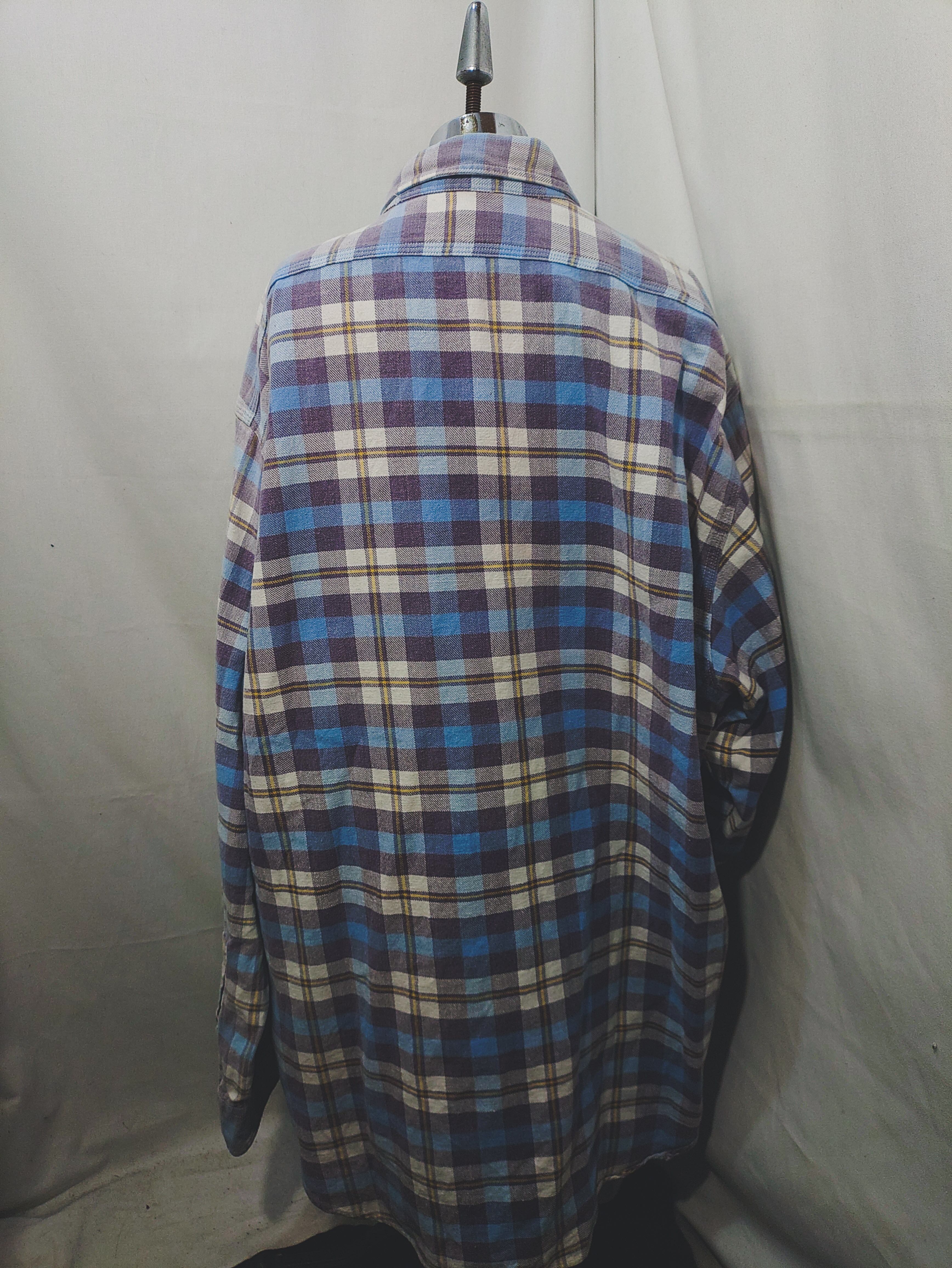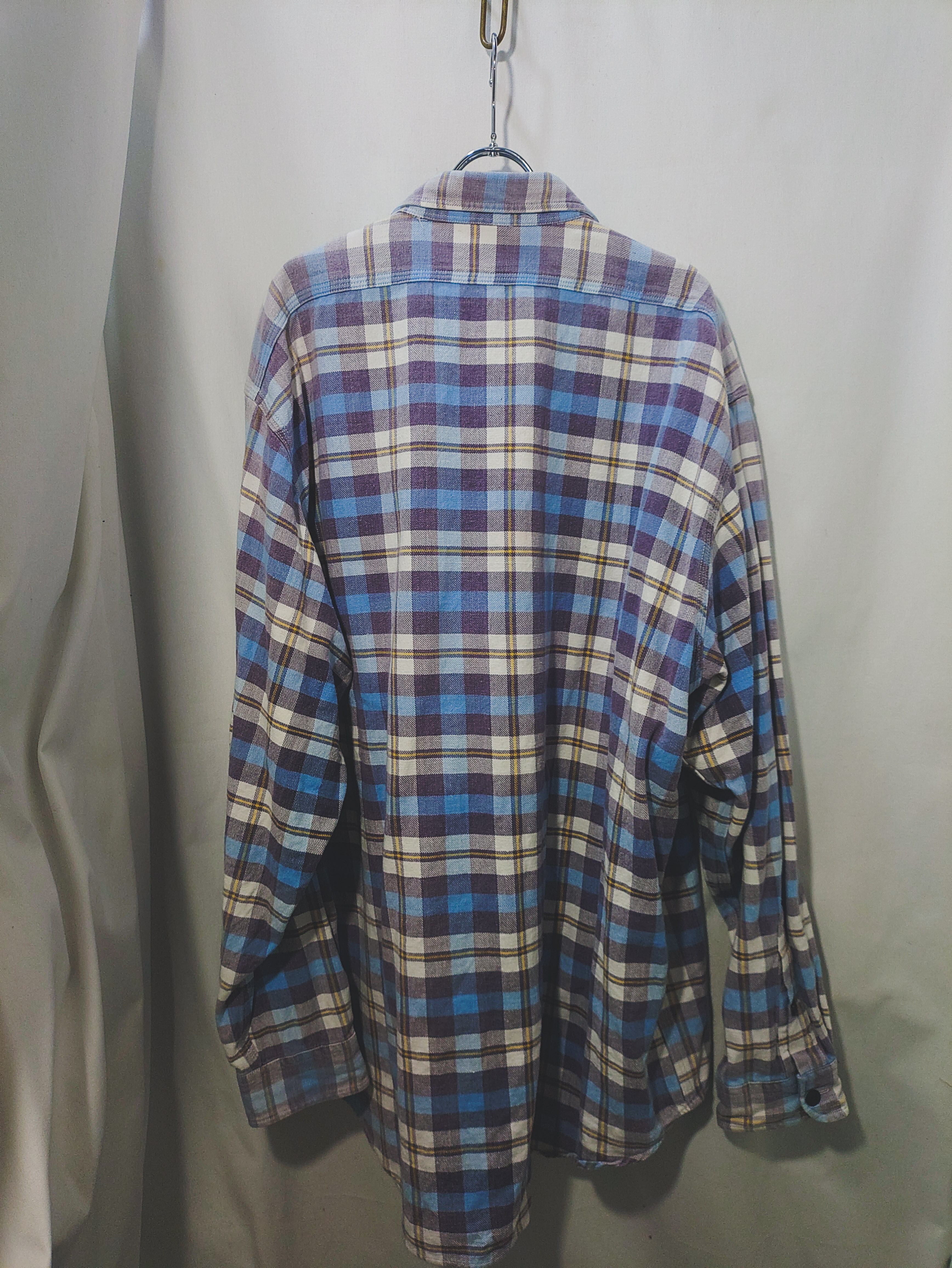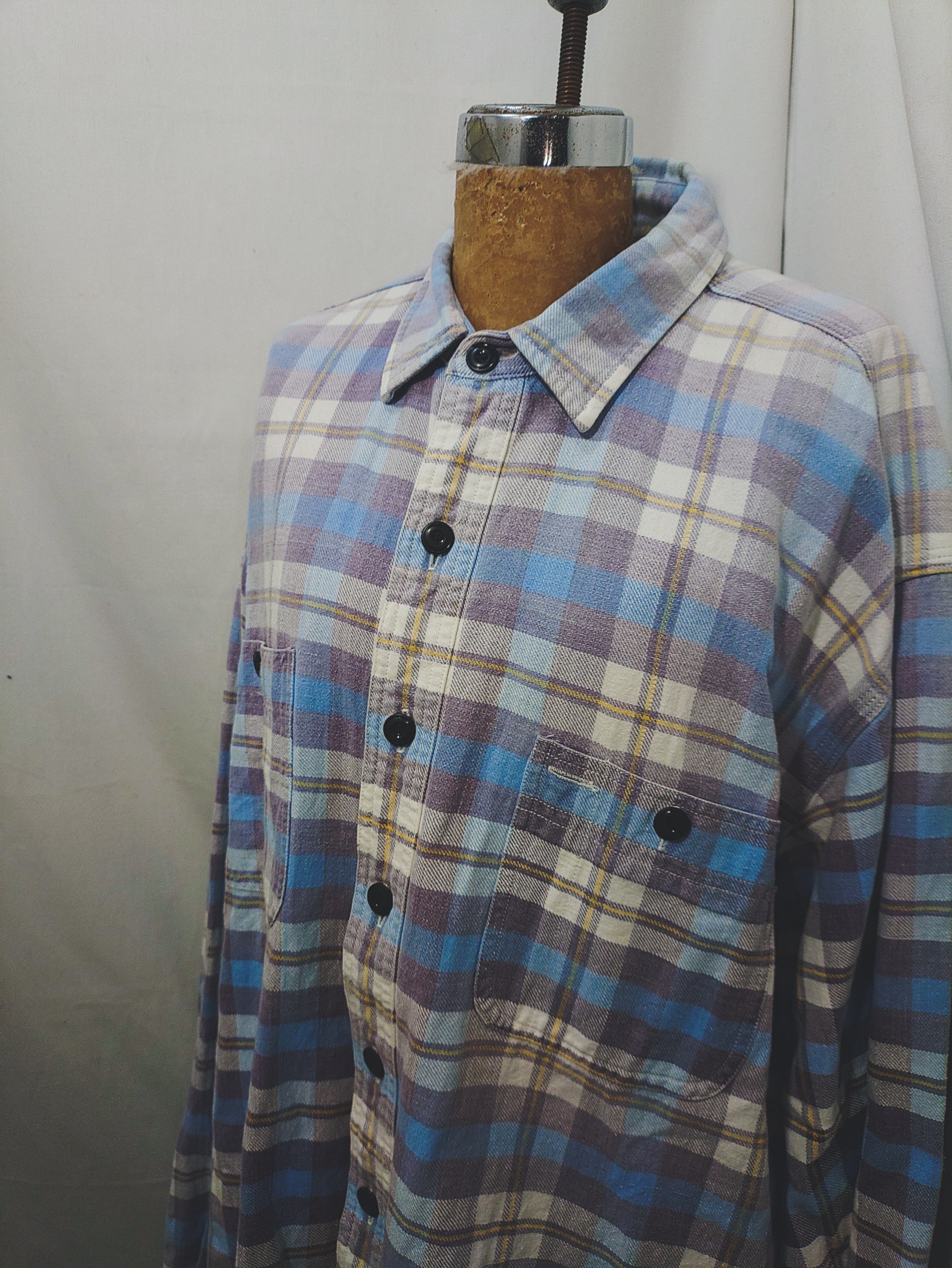 現行のデザインにはない、退色した様な淡いブルー系のチェックにイエローラインがアクセントになったビンテージライクな雰囲気のあるコットンシャツです。