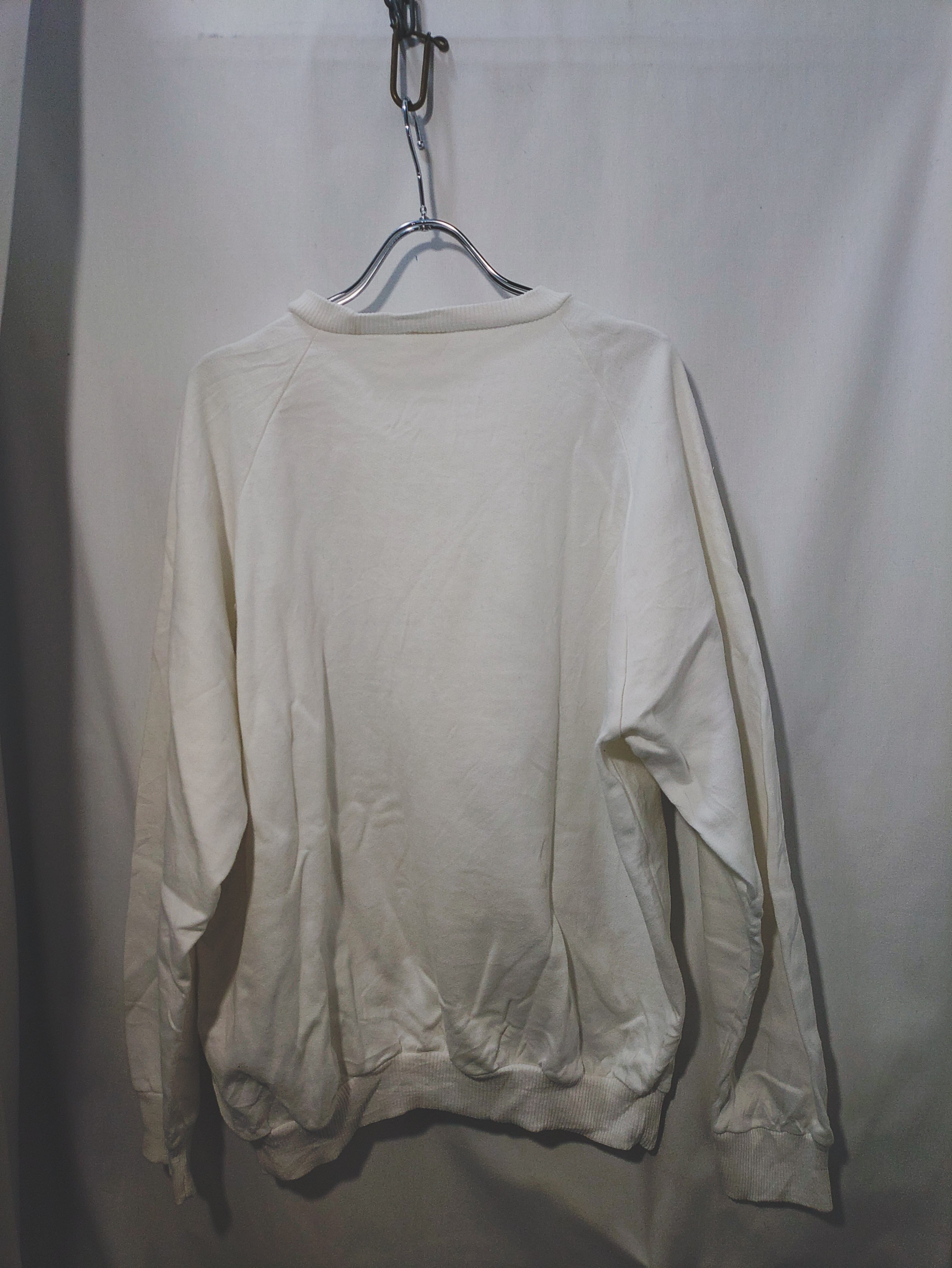 フランス製のラグランスリーブのコットン×アクリルの裏起毛のボディにフロント全面には自社オリジナル商品である食品油のPRキャラクターがプリントされています。