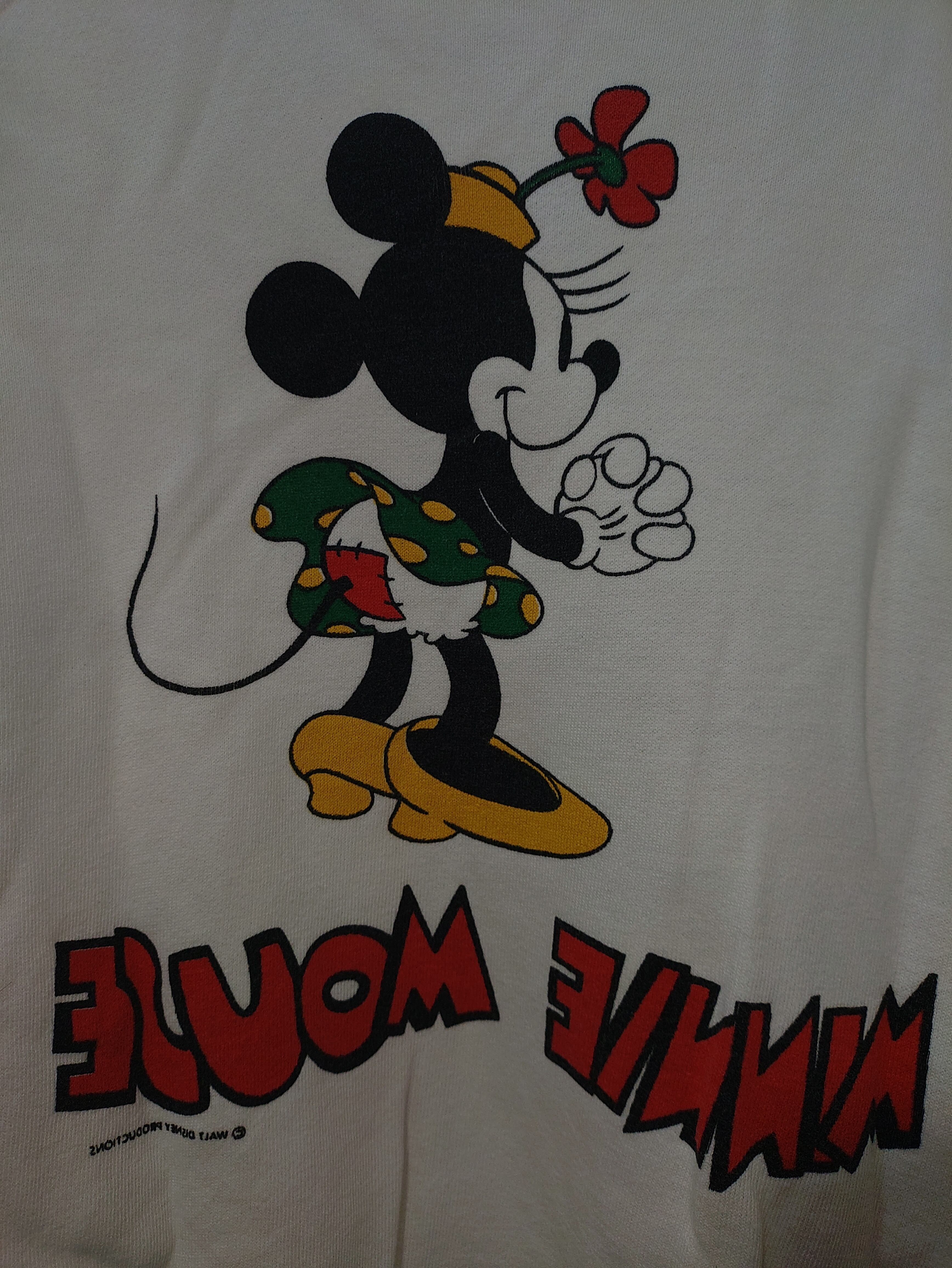 バックプリントの"MINNIE MOUSE"の文字やコピーライトの表記まで反転された、リンクプリントの中でも珍しい手の込んだデザイン。