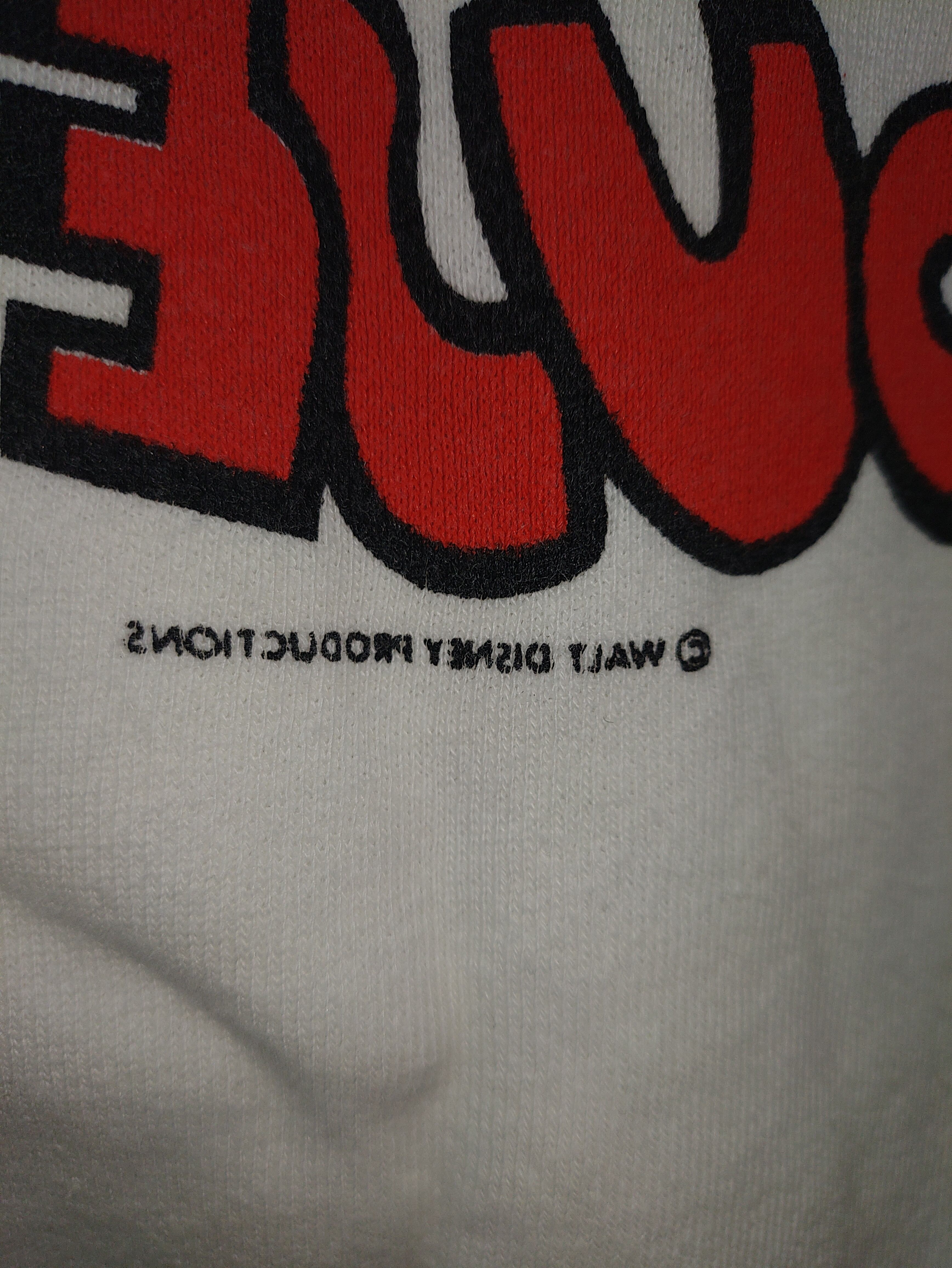 首周りがカットオフされ、タグが欠損しているので不確かではありますが、1929年から1986年まで"Walt Disney Productions"と言う社名で運営され1986年以降は"Walt Disney Company"にコピーライトも同様に変更されますのでこちらは86年以前のウォルトディズニーオフィシャルのモノかと推測されます。