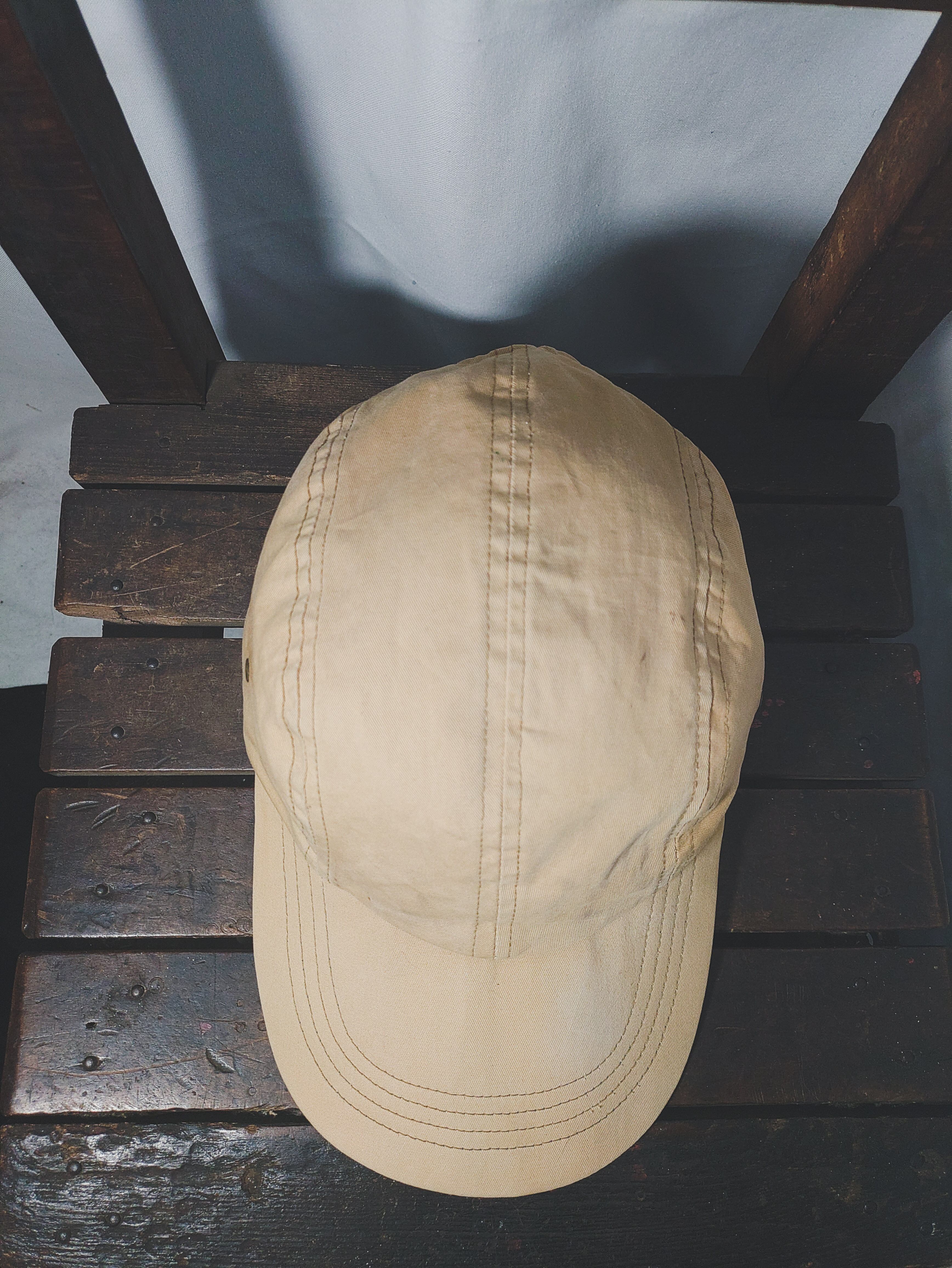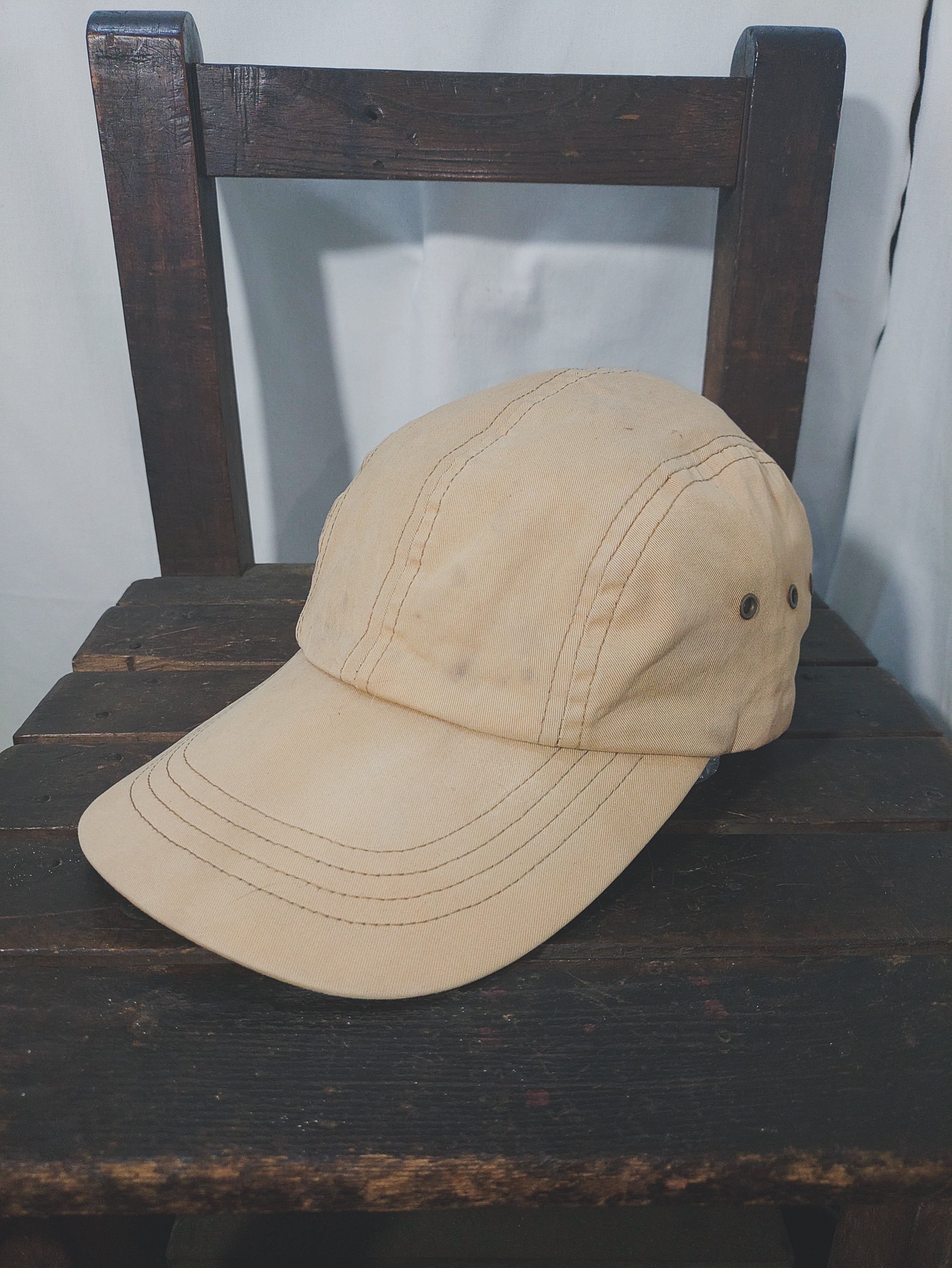 コットンキャンバス地のボディにウォッシュ加工を施し、さらに経年よるリアルな変色も相まってRRLよりもRRLらしいムラのある風合い溢れる仕様で、通常キャンプキャップは5パネルが主流ですが、こちらは4パネルの滑らかな流線的な美しいシルエット。