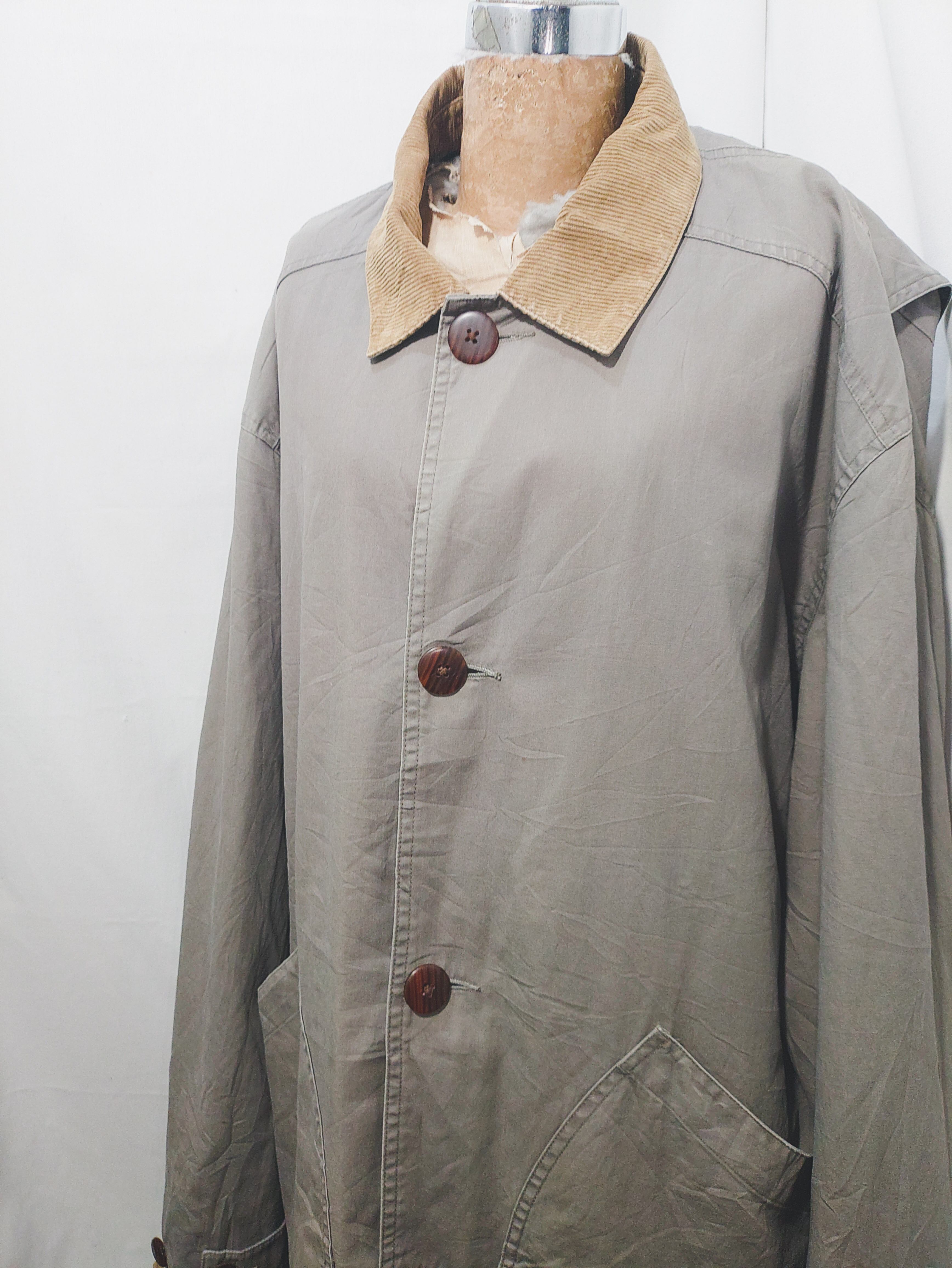 L.L.Beanなどでもよく見かけるシンプルなハンティングジャケットをモチーフにした定番アイテムで、襟や袖裏はコーデュロイ素材。