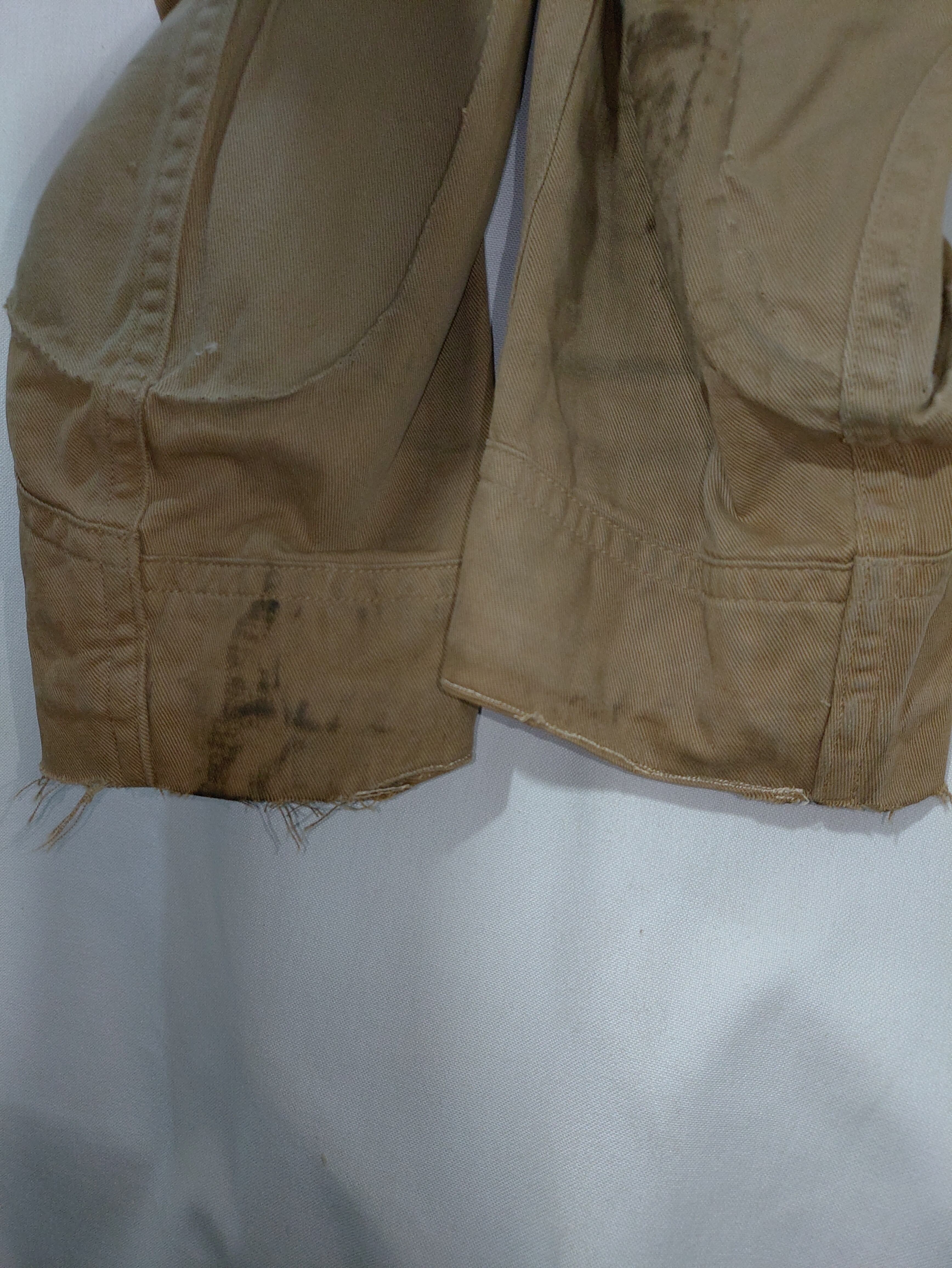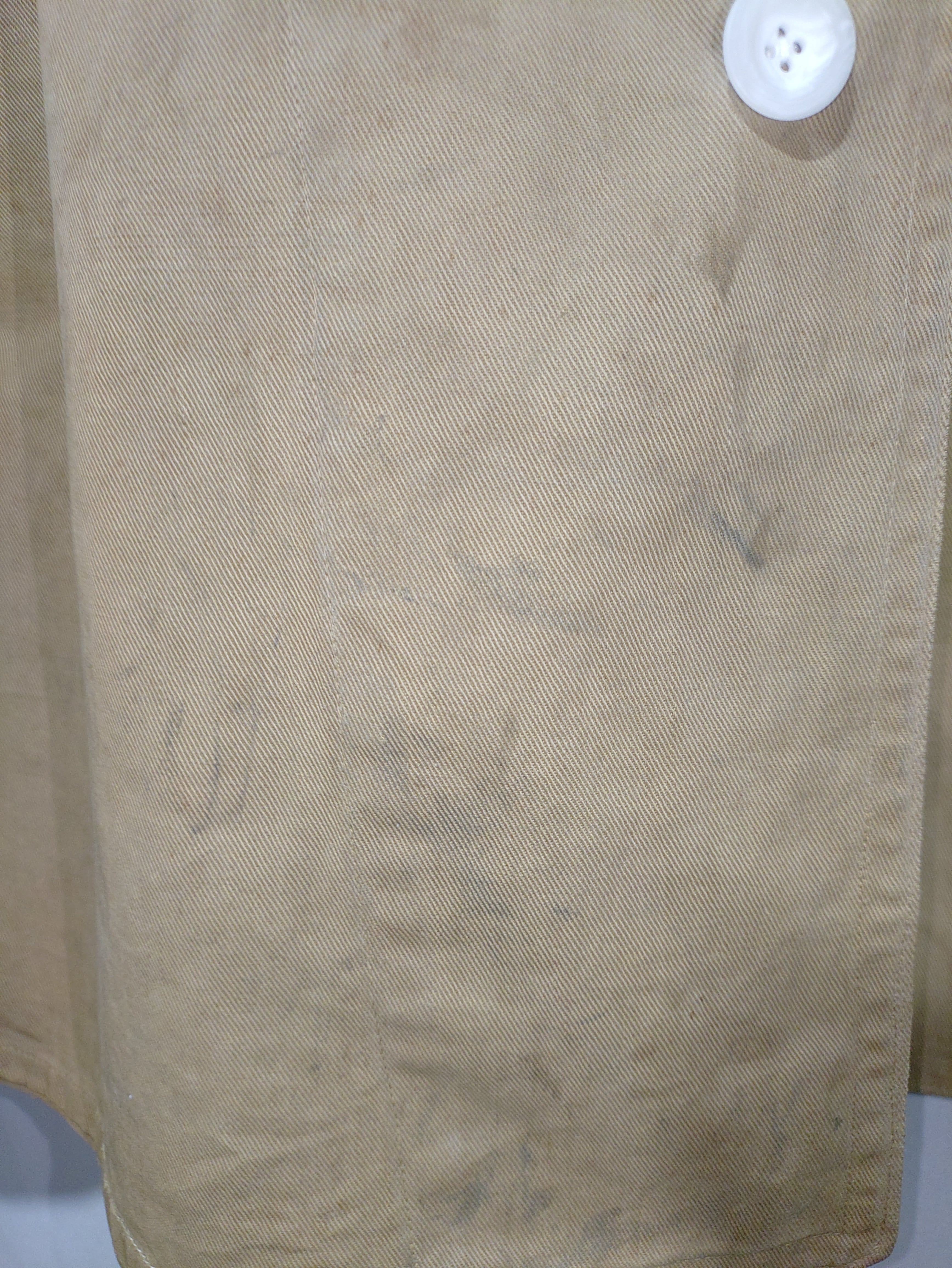 全体的に使用感があり、細かな解れやオイル染みなどの薄汚れがございますが着用時に支障のあるモノのではなく、加工では出せないリアルフェードの独特な雰囲気が背中のワッペンデザインと相まってたまらなくカッコいいです。