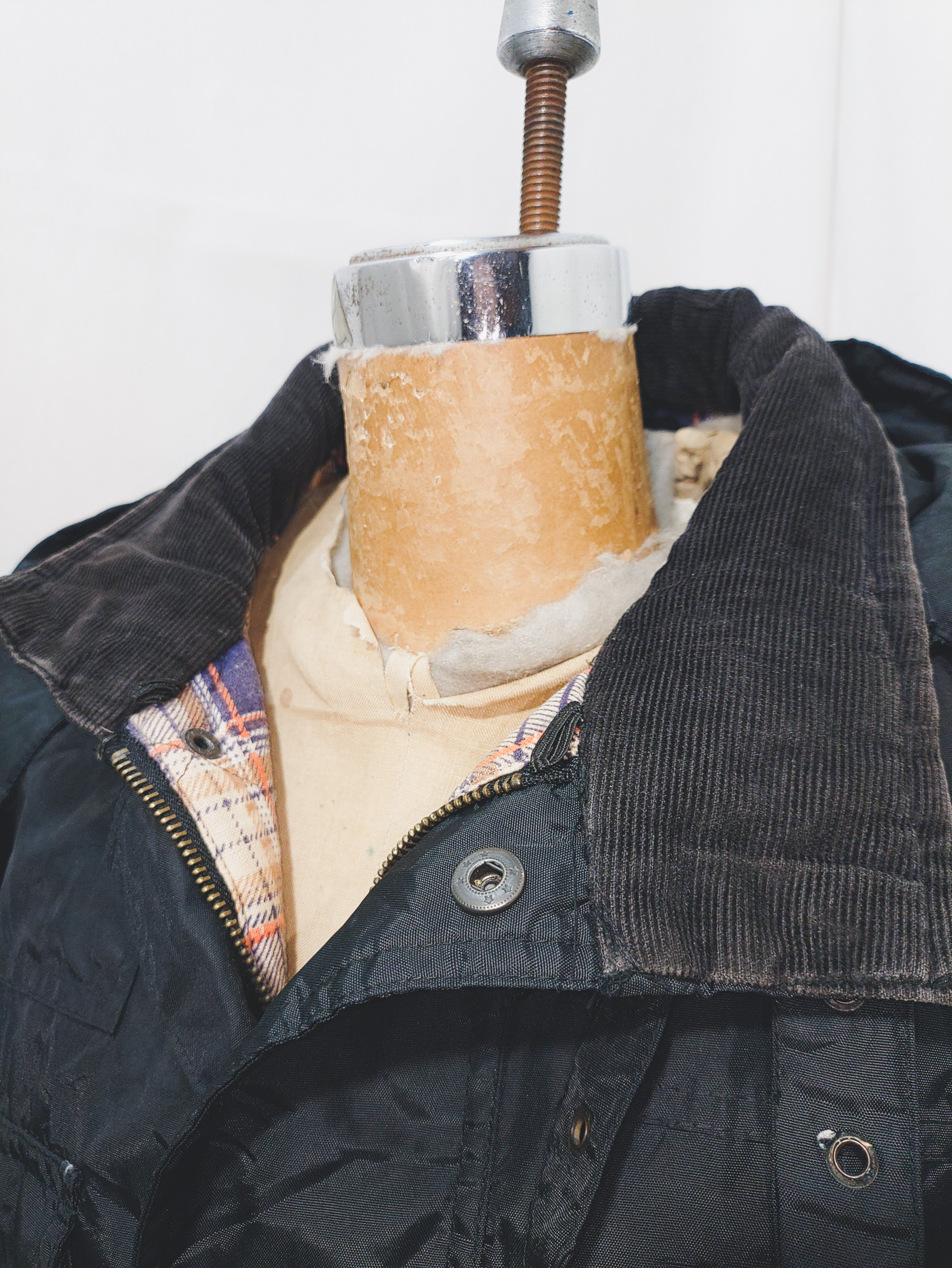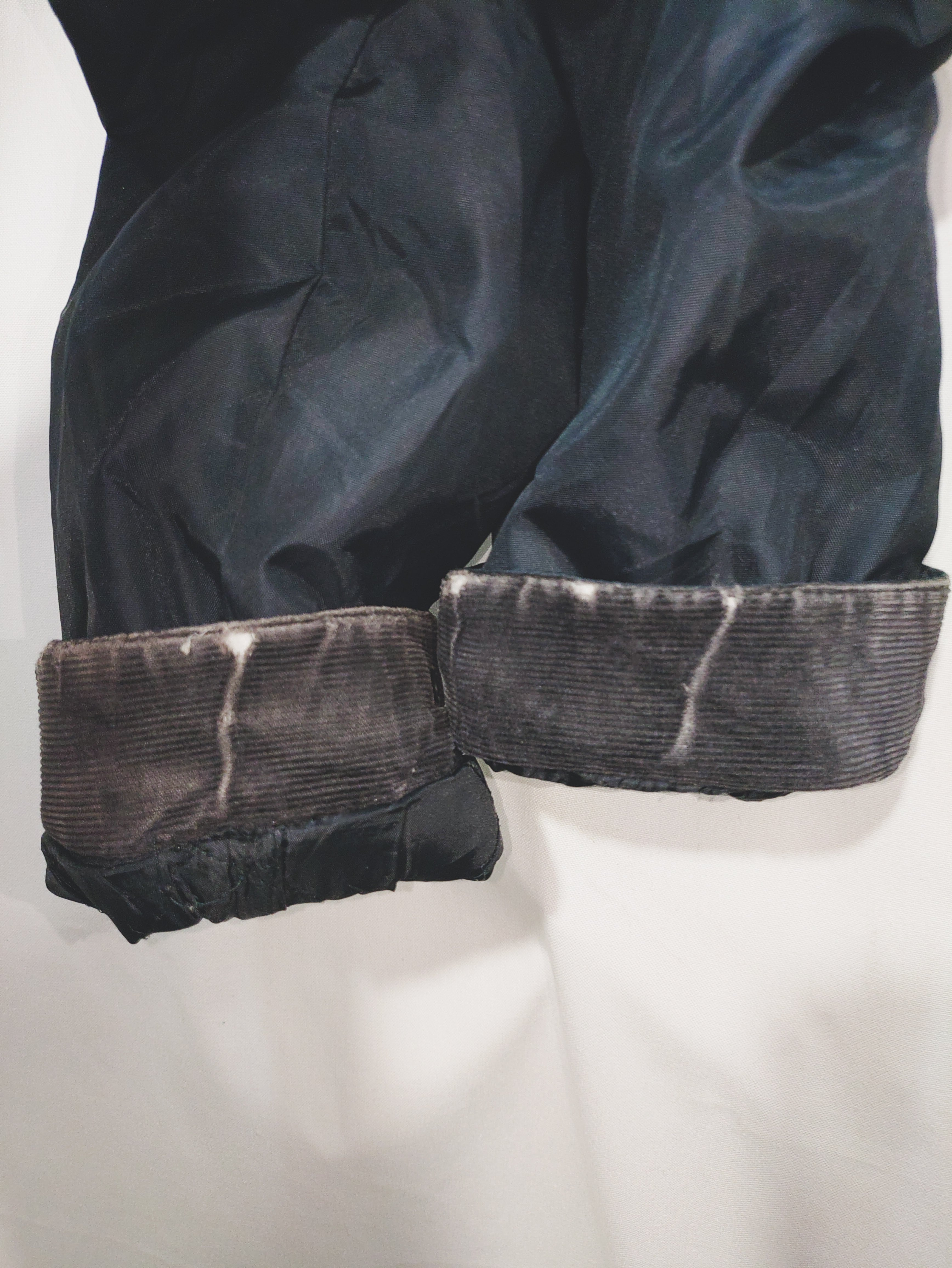 こちらはワックスドコットンではなく、高密度なナイロン生地が使用されており、襟と袖口はコーデュロイ素材になっていてワックスドジャケットの匂いが苦手な方にも着用いただけます。