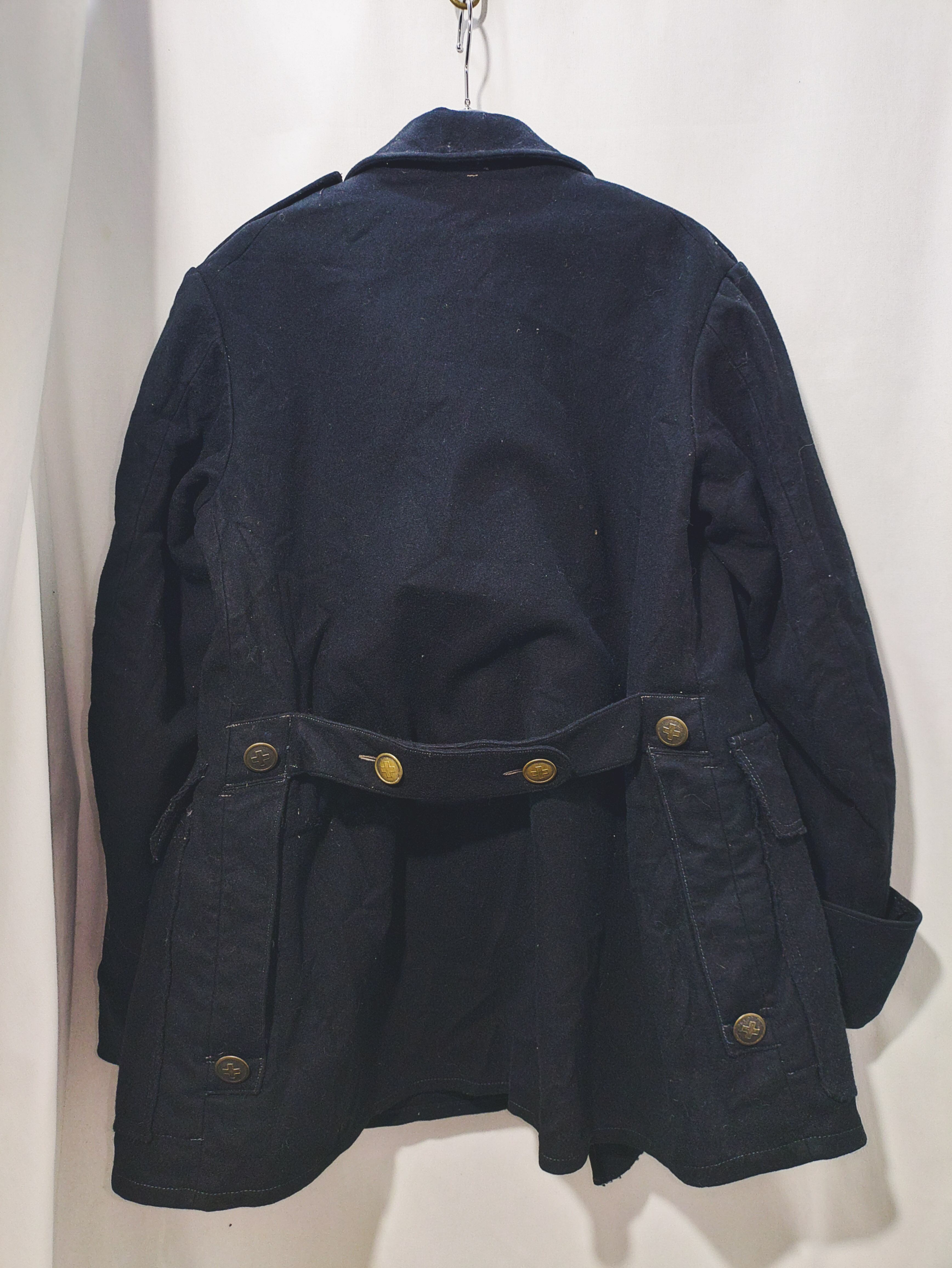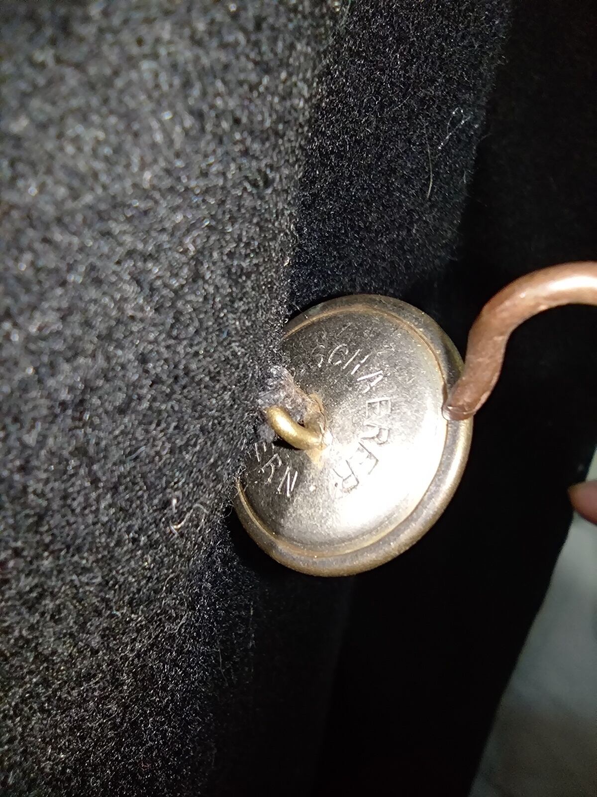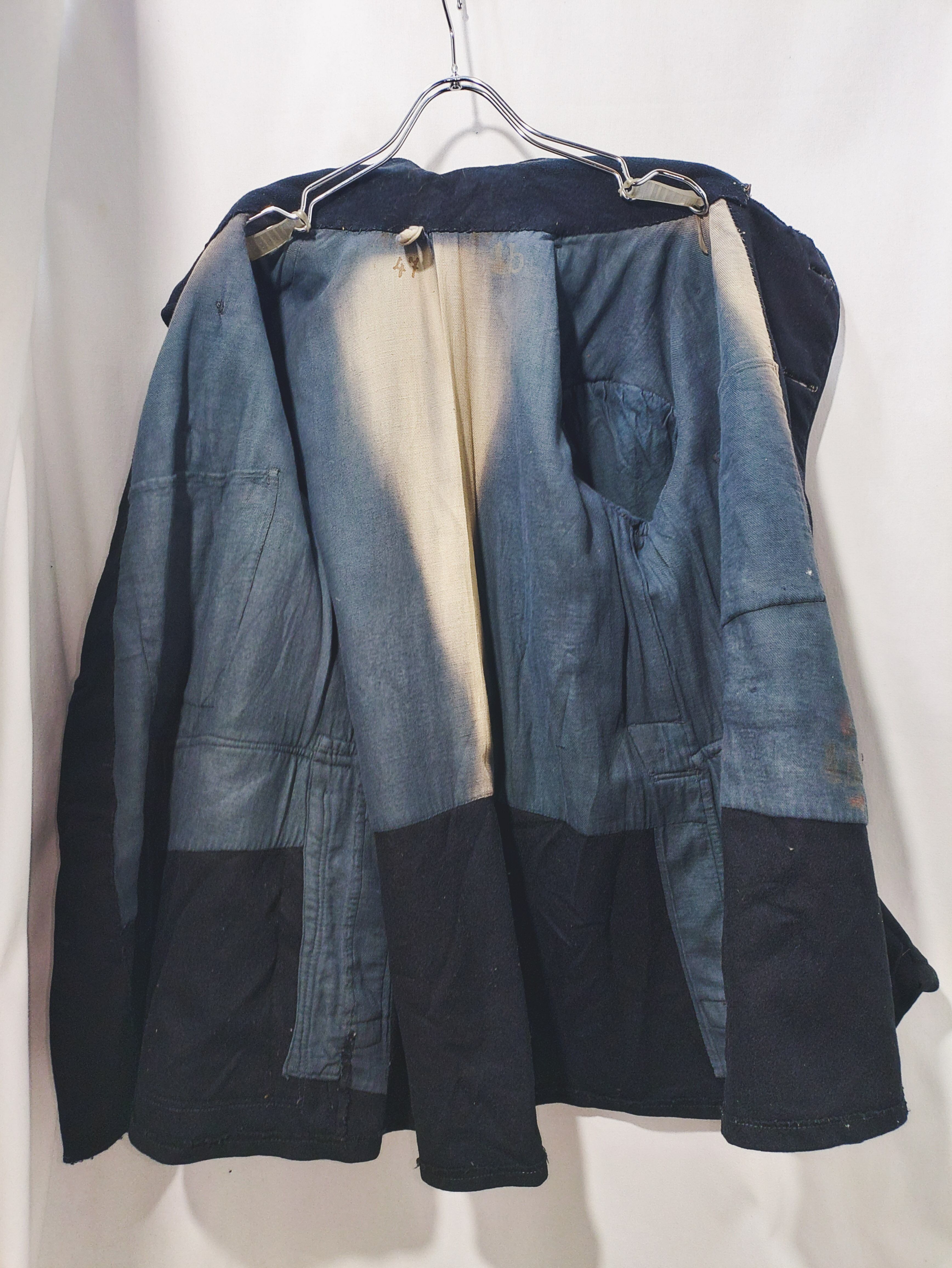 1920年代〜40年代頃までのユーロビンテージで良く見かける"O.SCHAERER BERN"のボタンが使用され、ボタンホール作りや、やや太めのアーム、ショルダー部分のギャザー、縫製等のディテール、こちらは消えてしまっていますが同型同色の個体で裏地に”LUZERN”と製造年の1929年のスタンプが印字されているモノが存在する事からおそらく大戦前から存在するアイテムかもしれません。