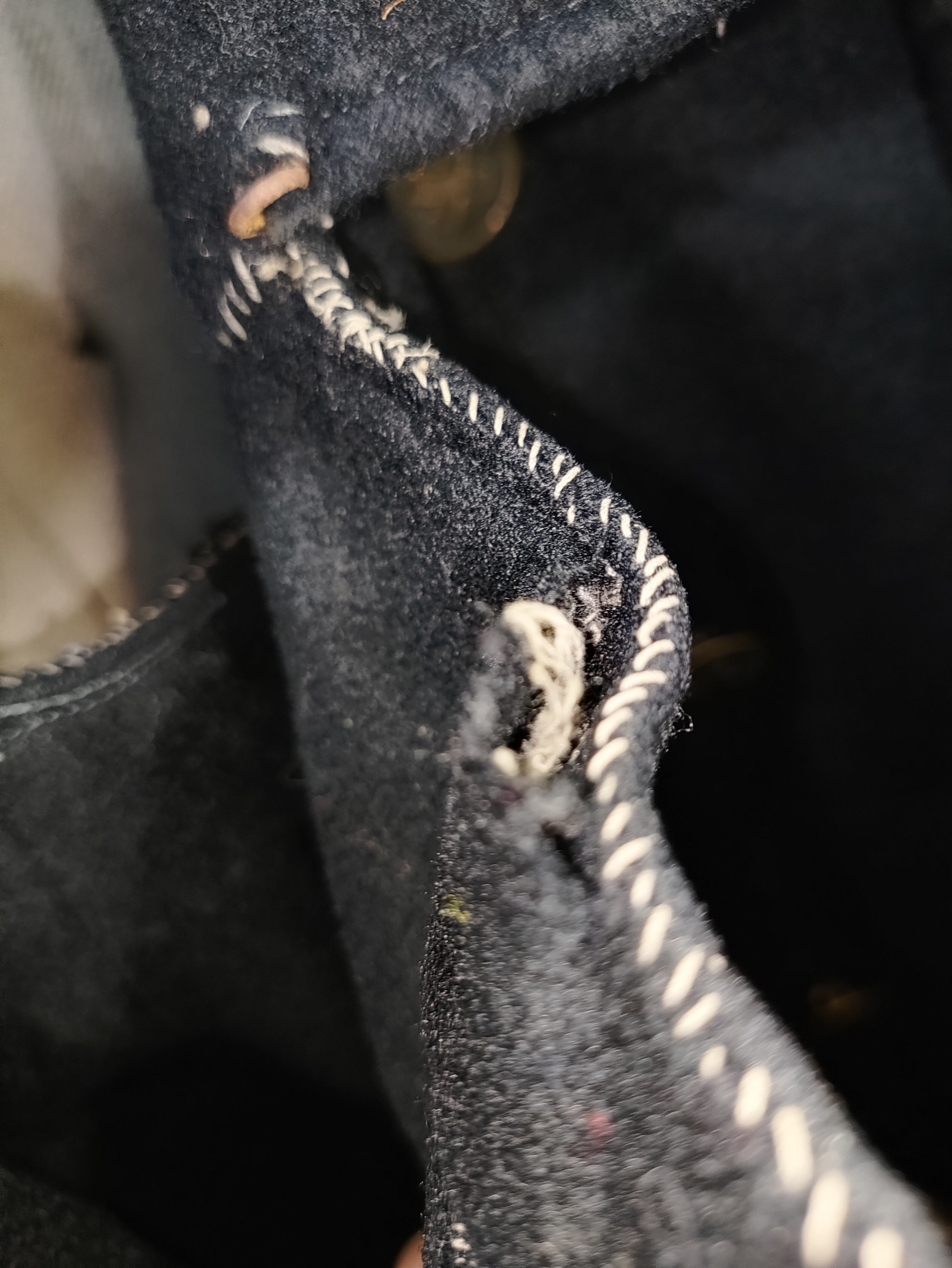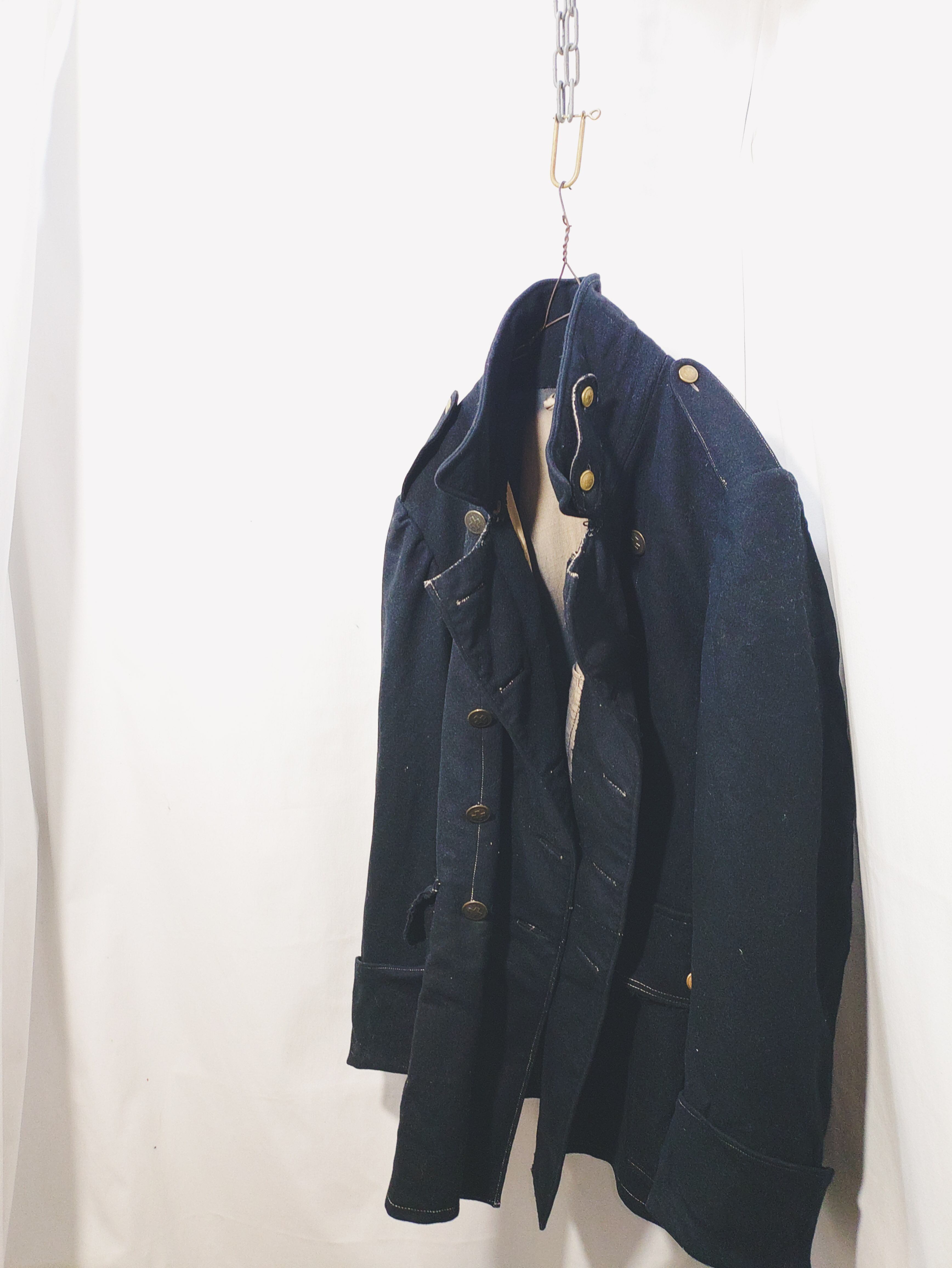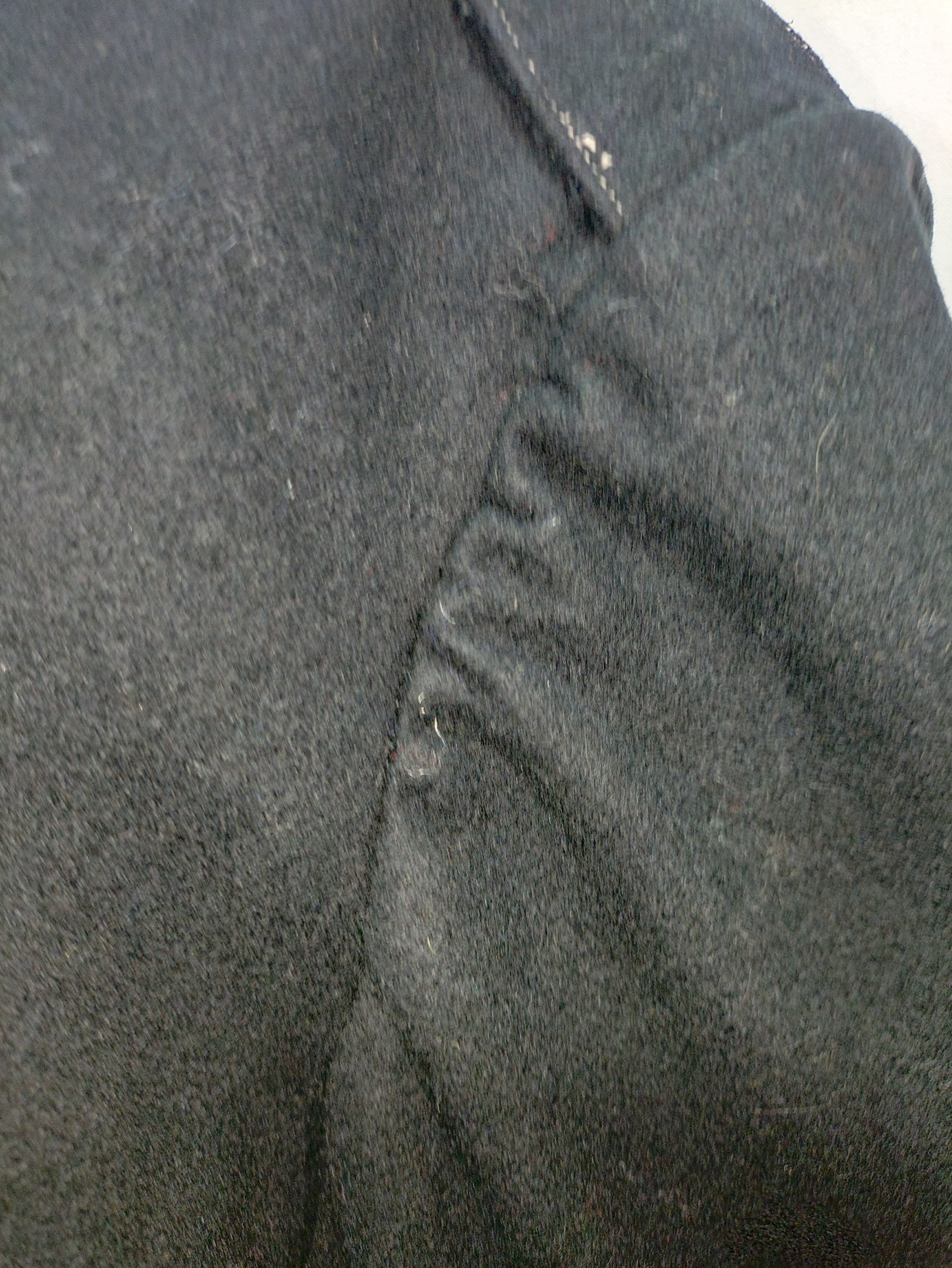 1920年代〜40年代頃までのユーロビンテージで良く見かける"O.SCHAERER BERN"のボタンが使用され、ボタンホール作りや、やや太めのアーム、ショルダー部分のギャザー、縫製等のディテール、こちらは消えてしまっていますが同型同色の個体で裏地に”LUZERN”と製造年の1929年のスタンプが印字されているモノが存在する事からおそらく大戦前から存在するアイテムかもしれません。