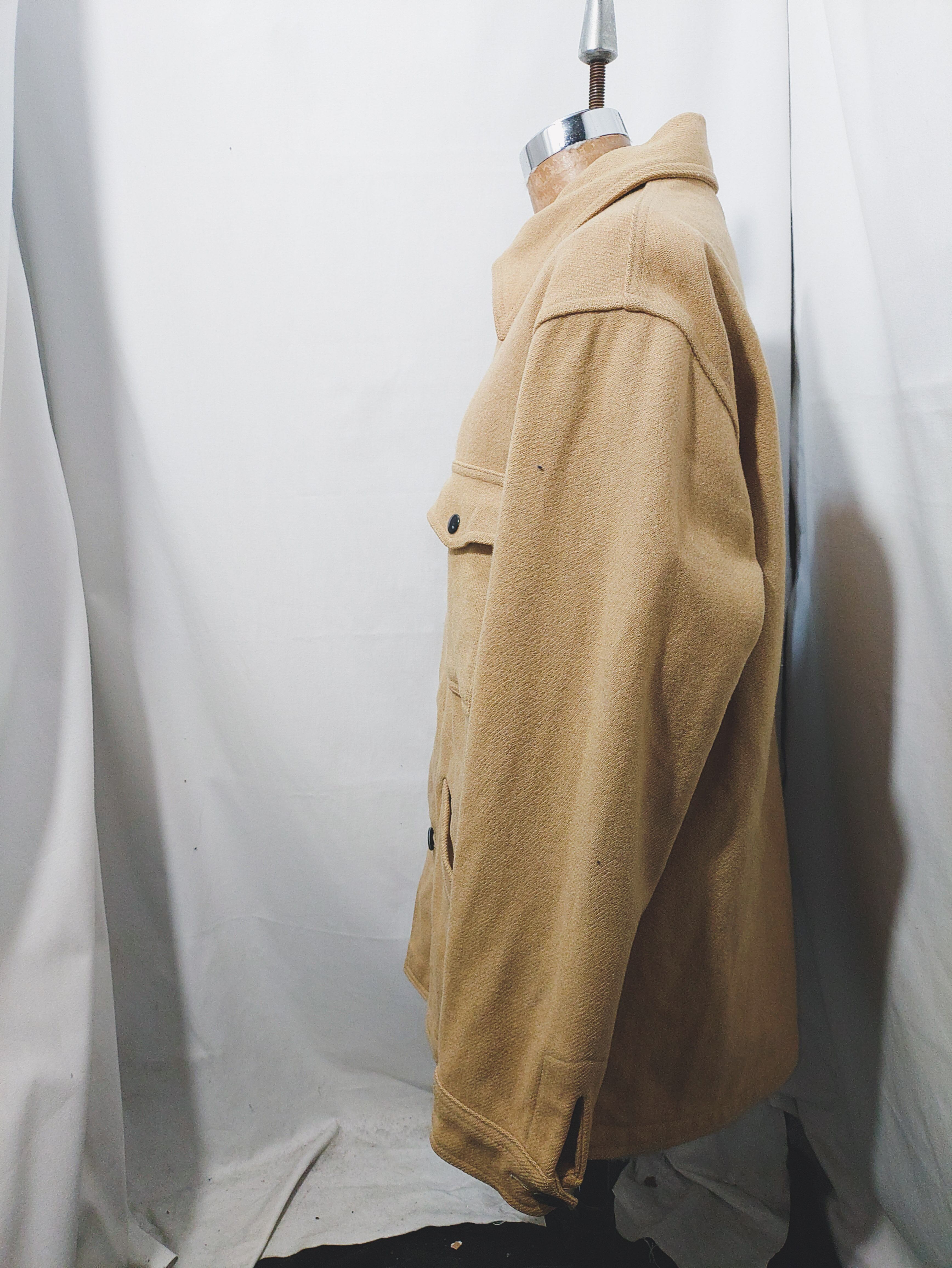 当時のこの手のアメリカ製の物と比較して若干細身の様な感じもしますが、シャツとジャケットの中間の様なアイテムなので、インナーに薄手のニットやパーカーを着込める余裕はありそうなサイズ感です。