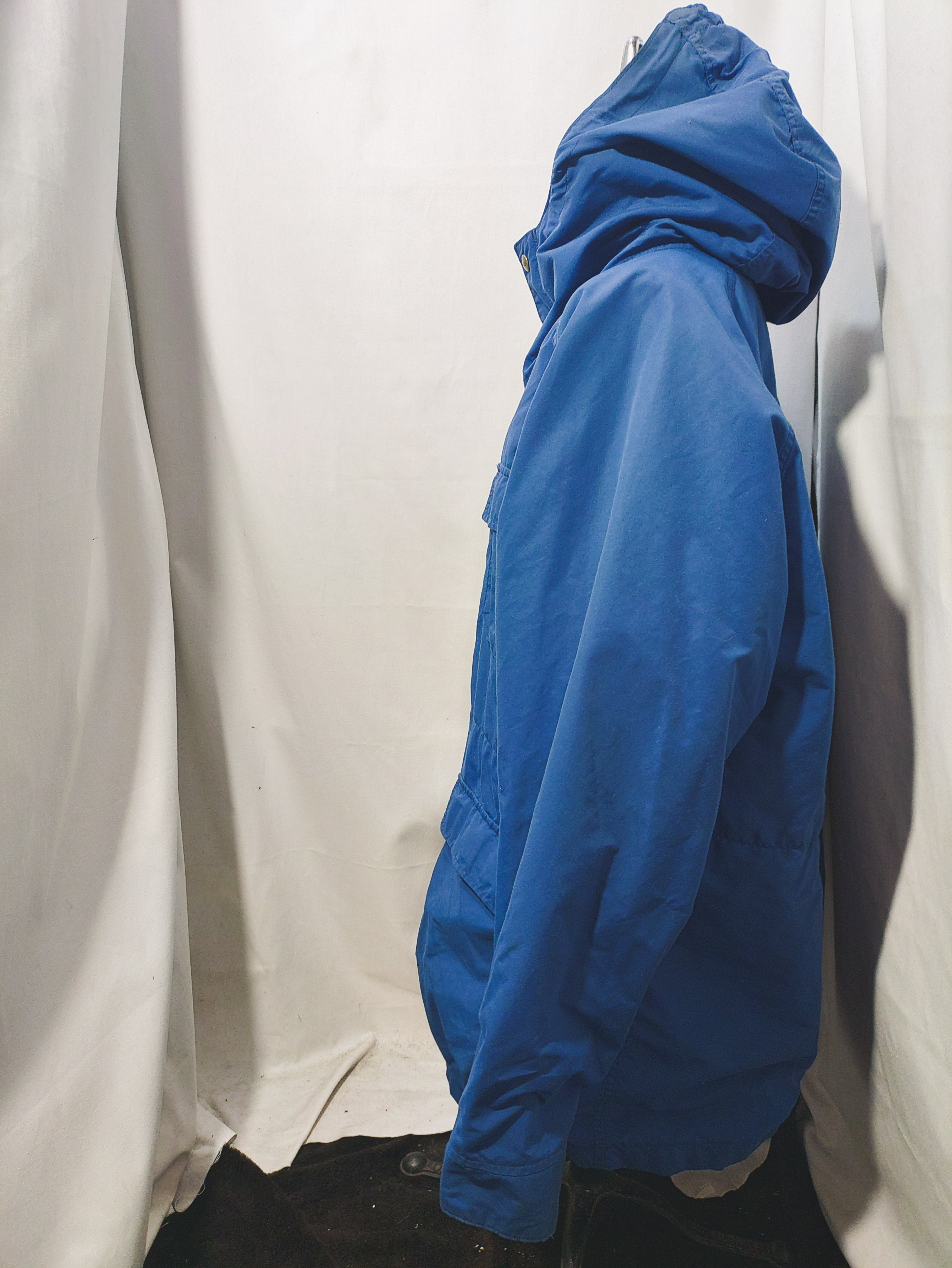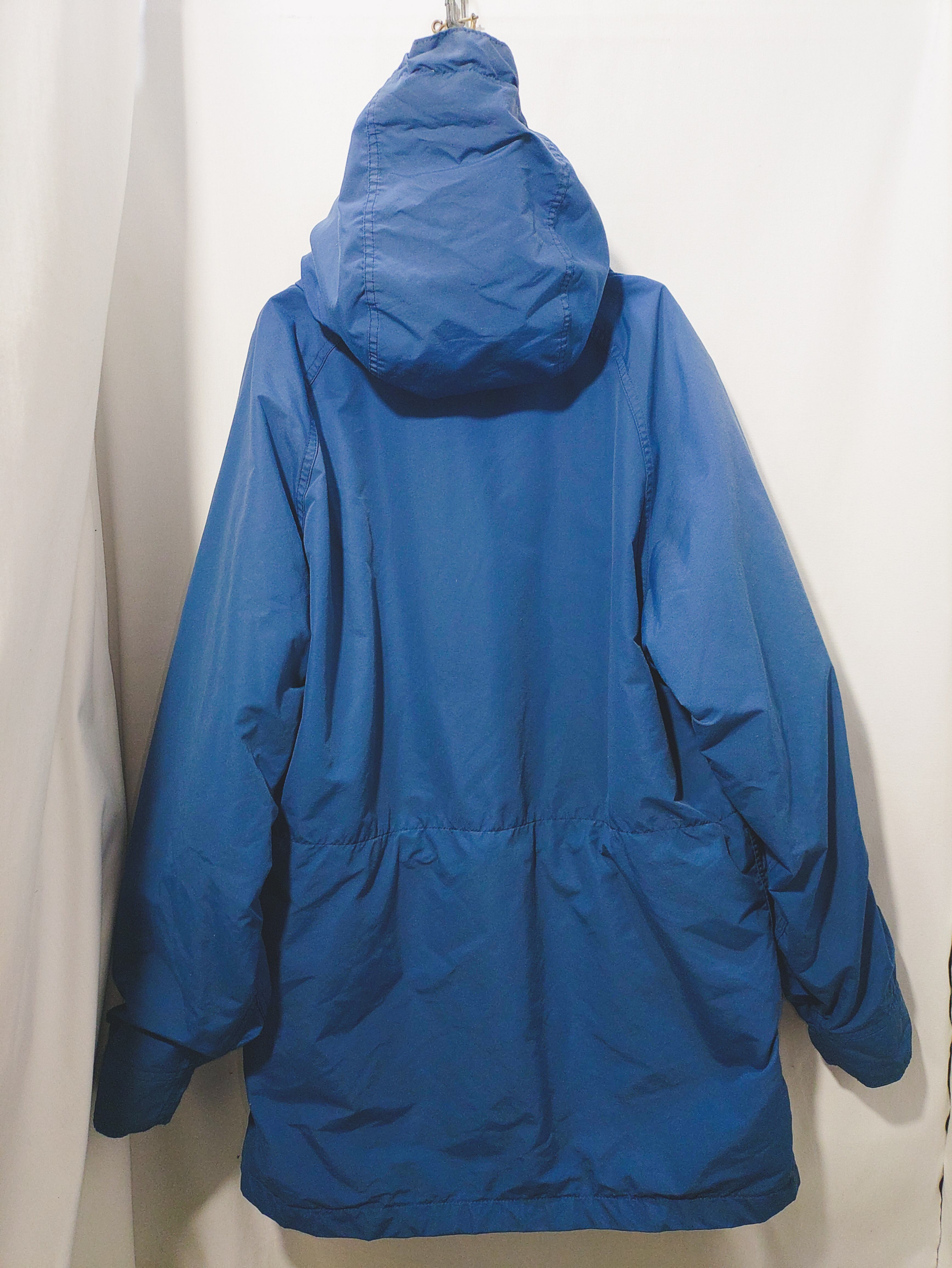 流行に左右されない定番のクラシックなブルーカラー、裏地ベージュの定番の配色で、すっぽりとかぶれる大きめのフードで顔半分が隠れるほどのマウンパならではのボリューム感のある首周り。