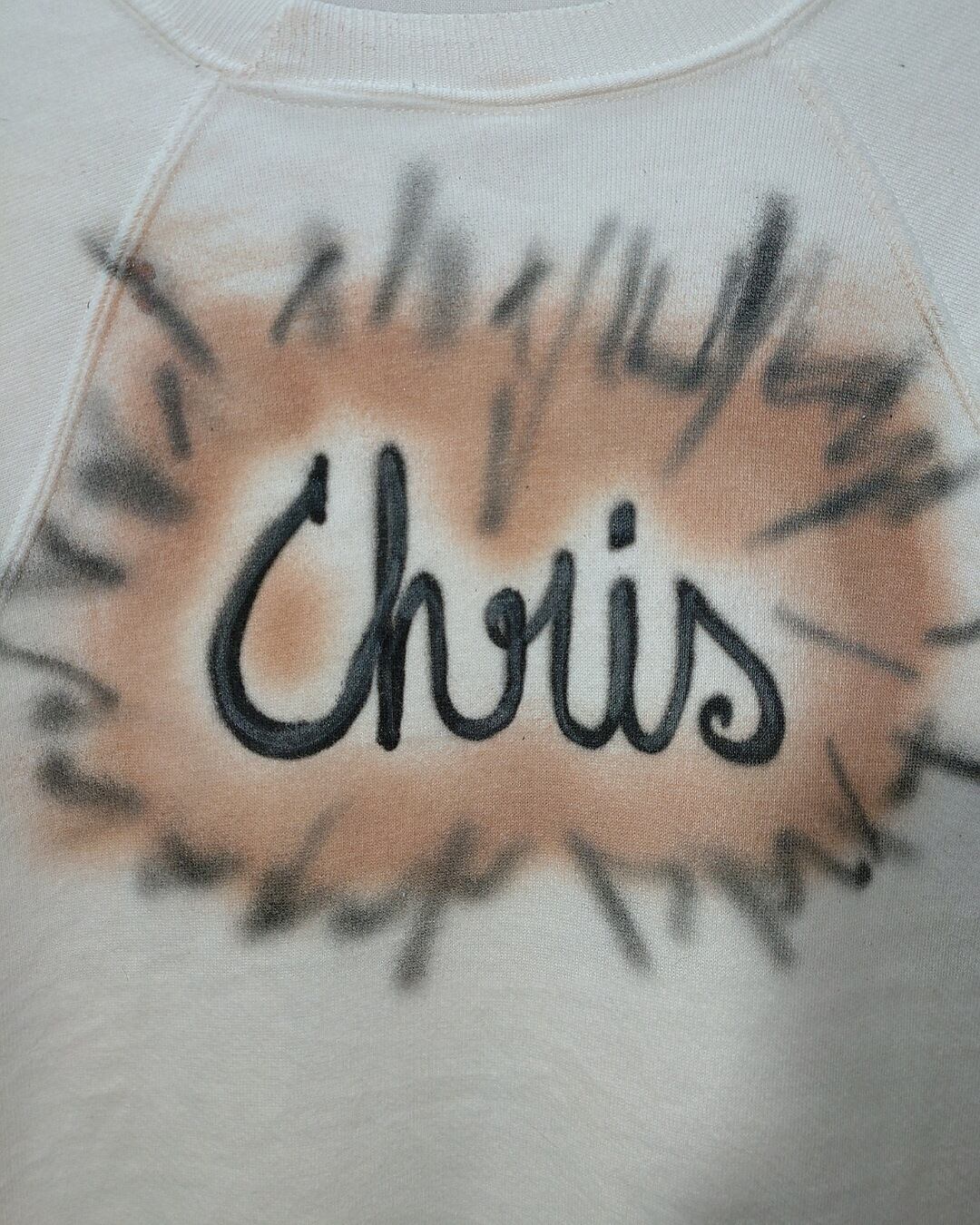 バックには同じ手法で"Chris"とあり、おそらく作者の名前かと思われ、両面アートの唯一無二なスウェットになります。