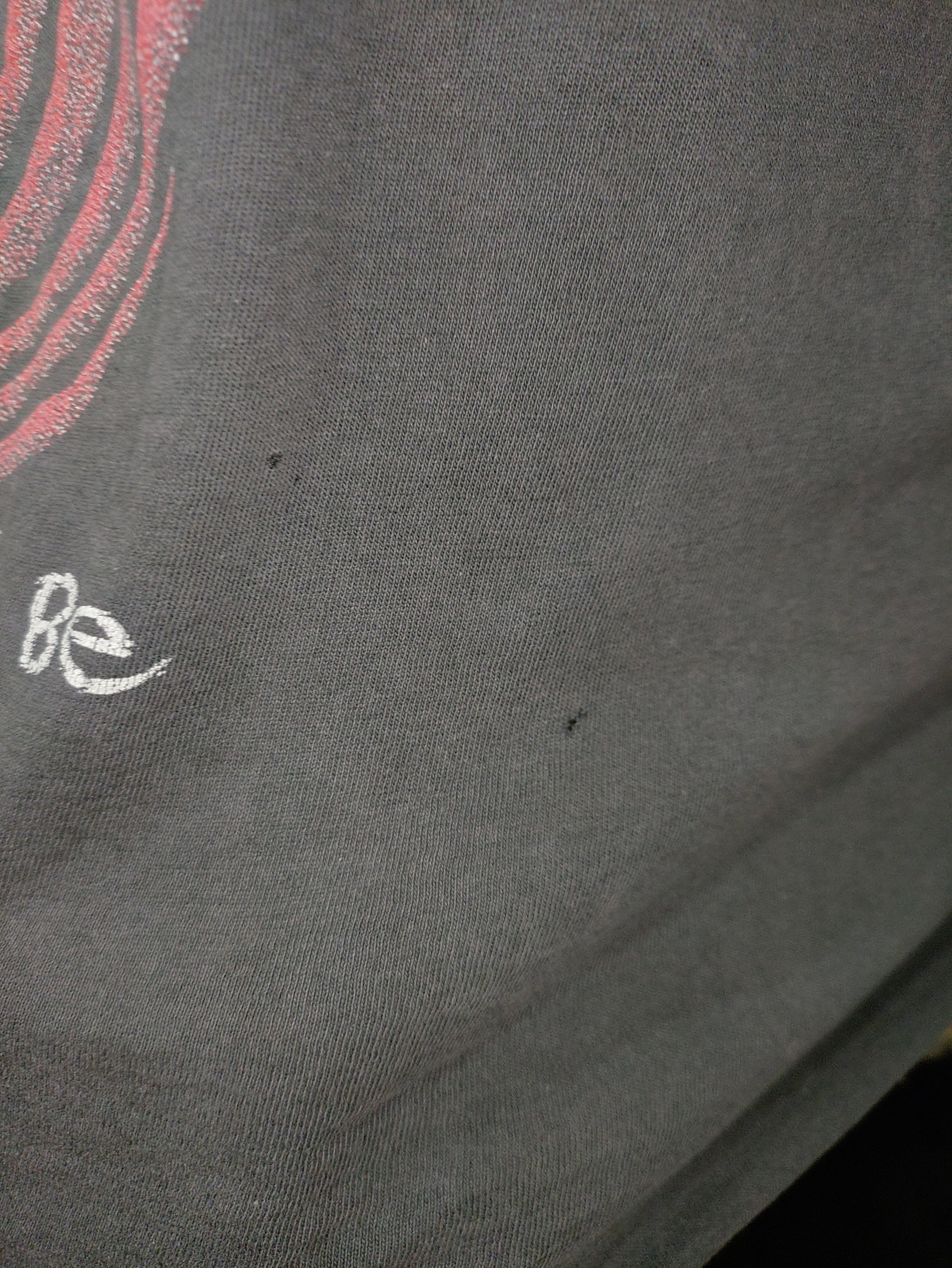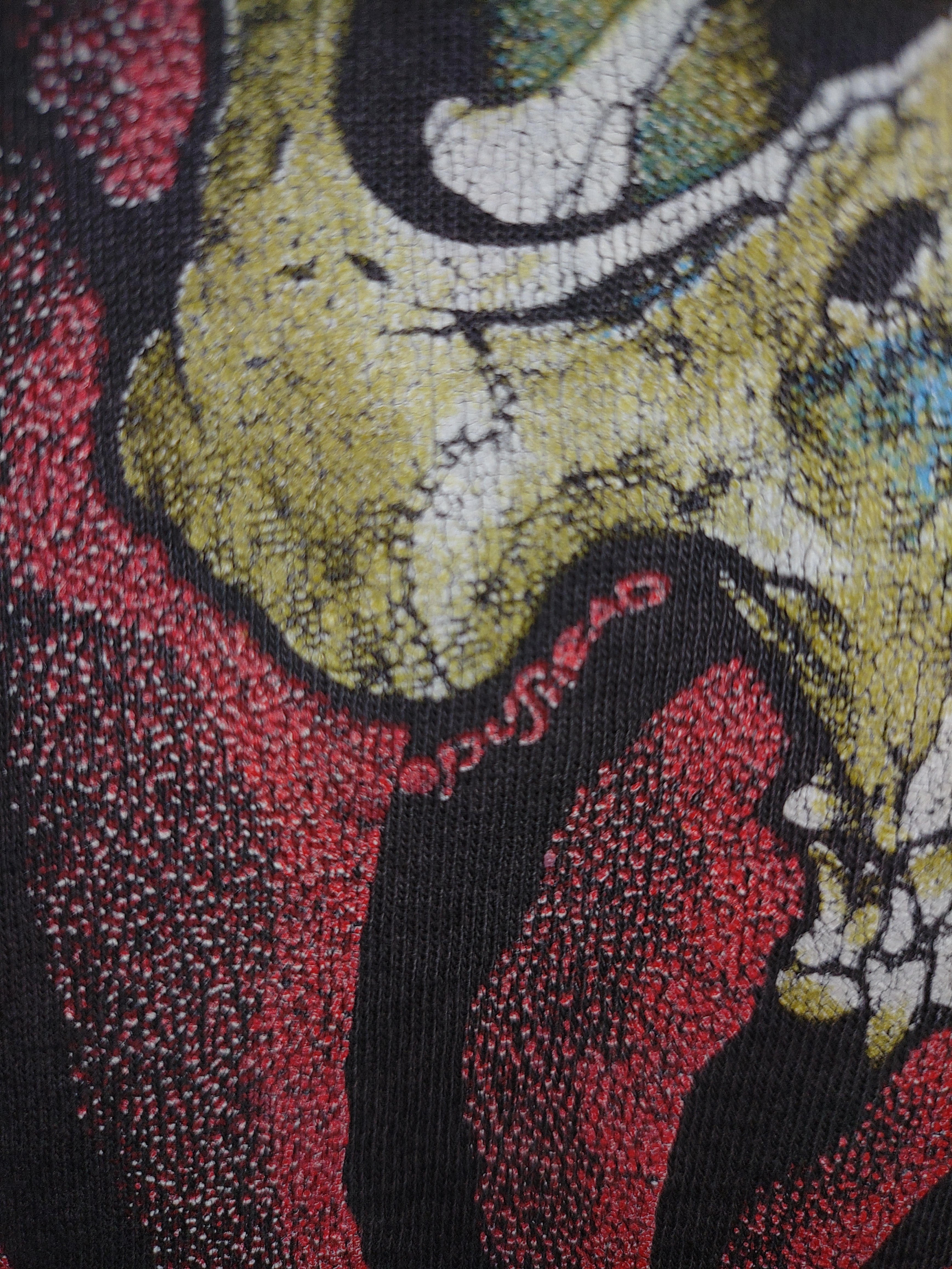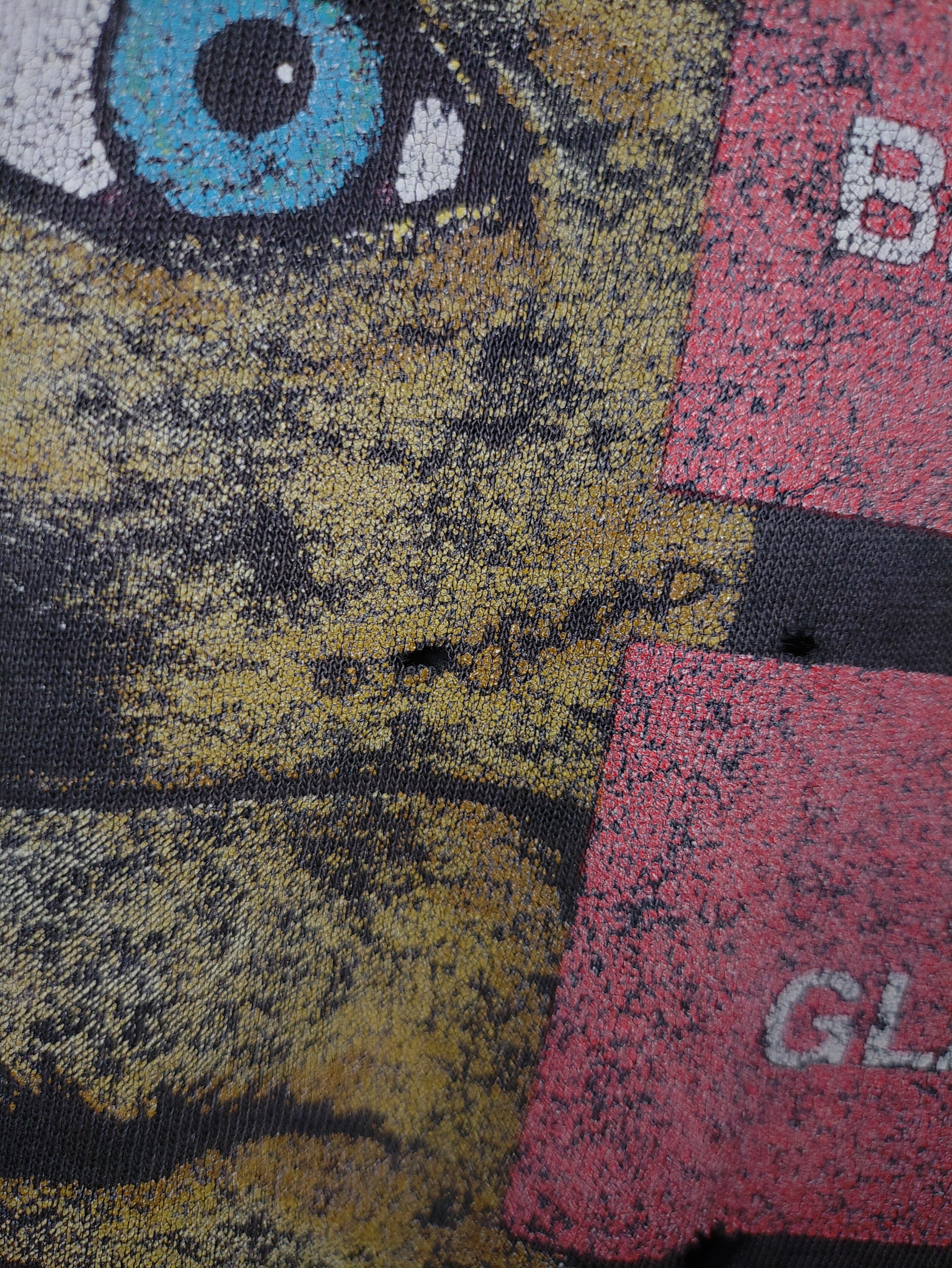 中でも特徴的なのが、前オーナーによりバックプリントの一部に切れ込みが入り、メタルロックらしい唯一無二な仕様にカスタムされています。