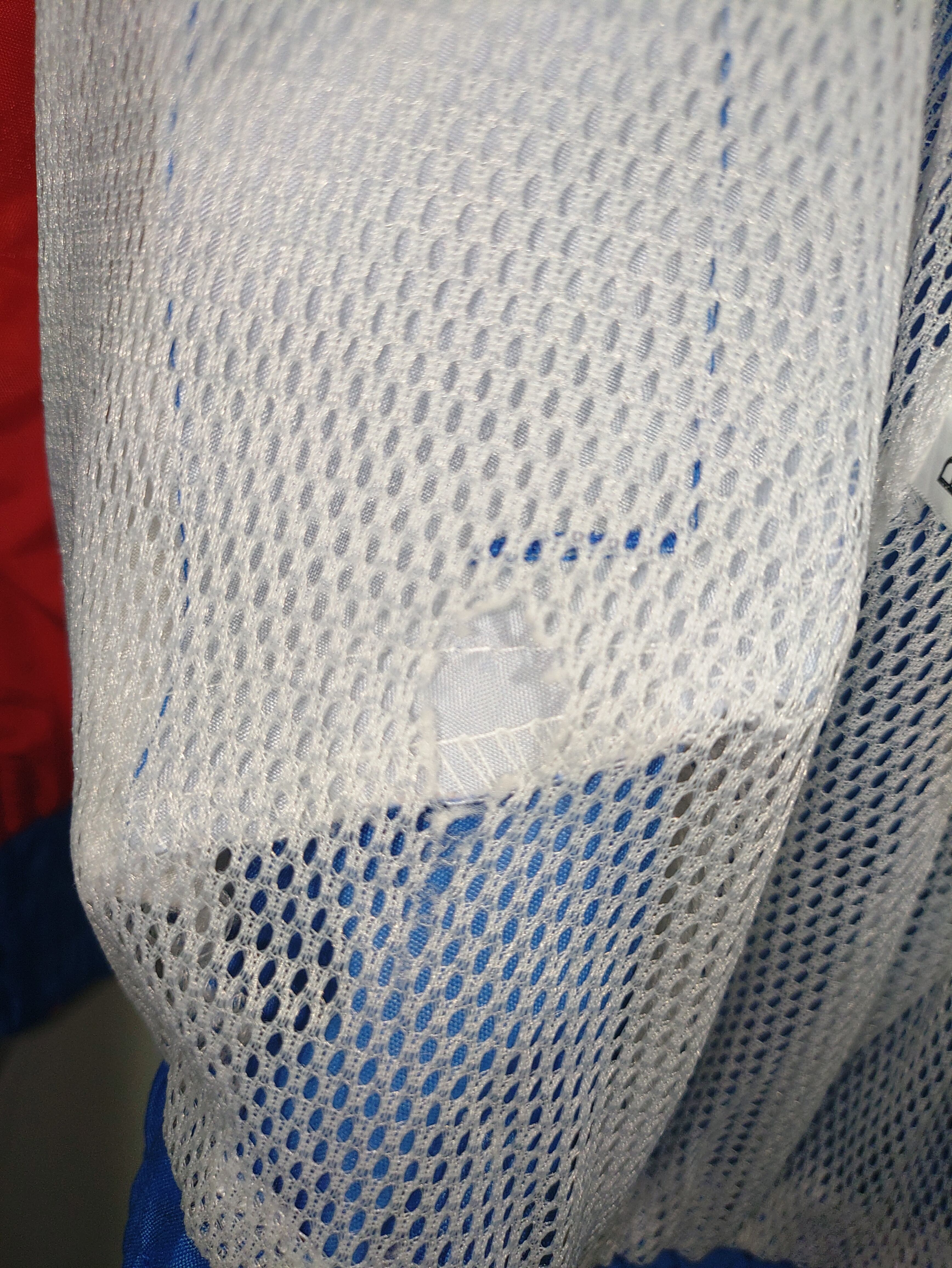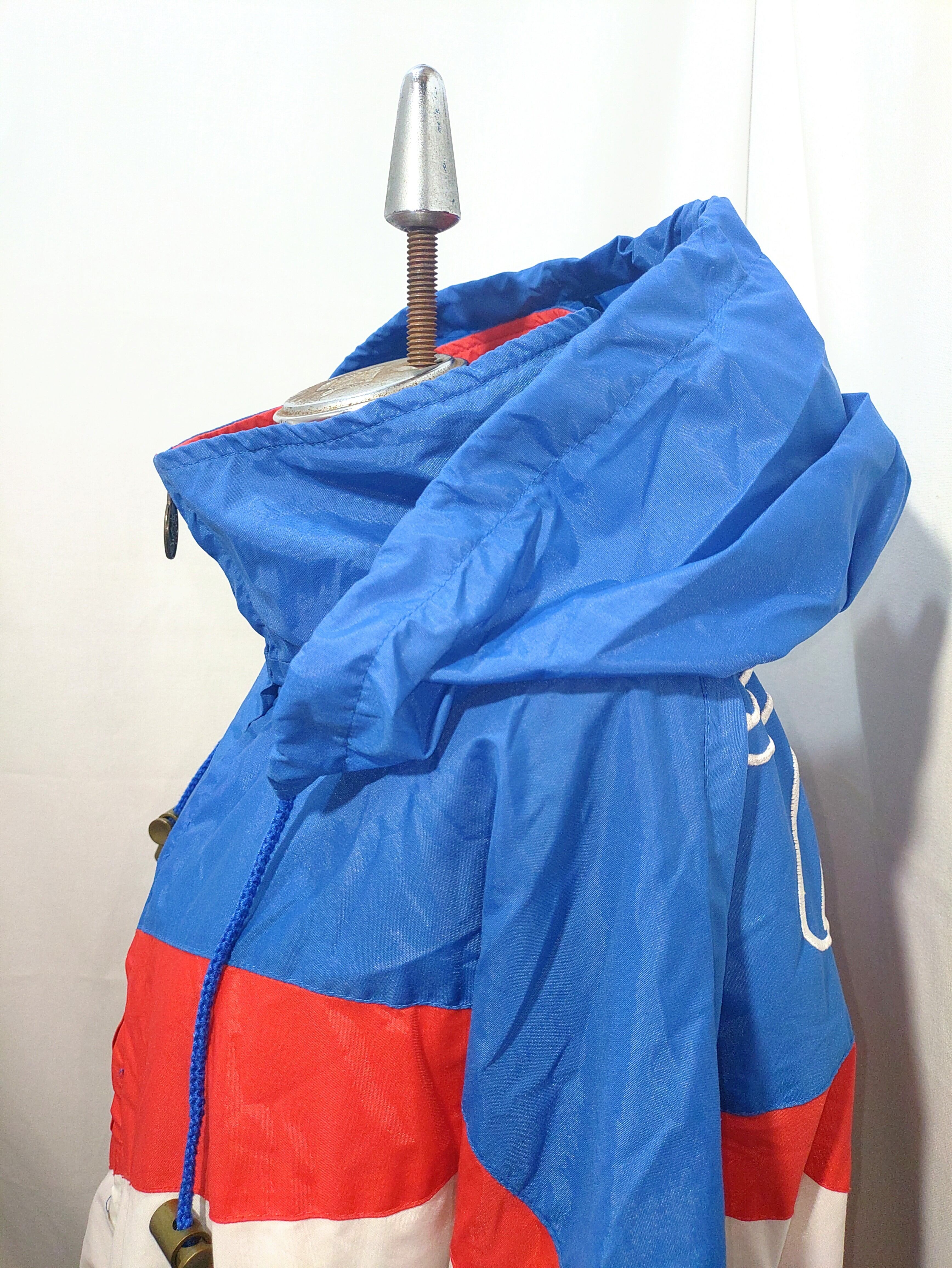 チームカラーであるトリコロールデザインでフロント右胸辺りチームロゴや、バックのネーム刺繍がインパクト抜群で、両サイドにはポケットが付き、首元には簡易的なフードが収納されています。
