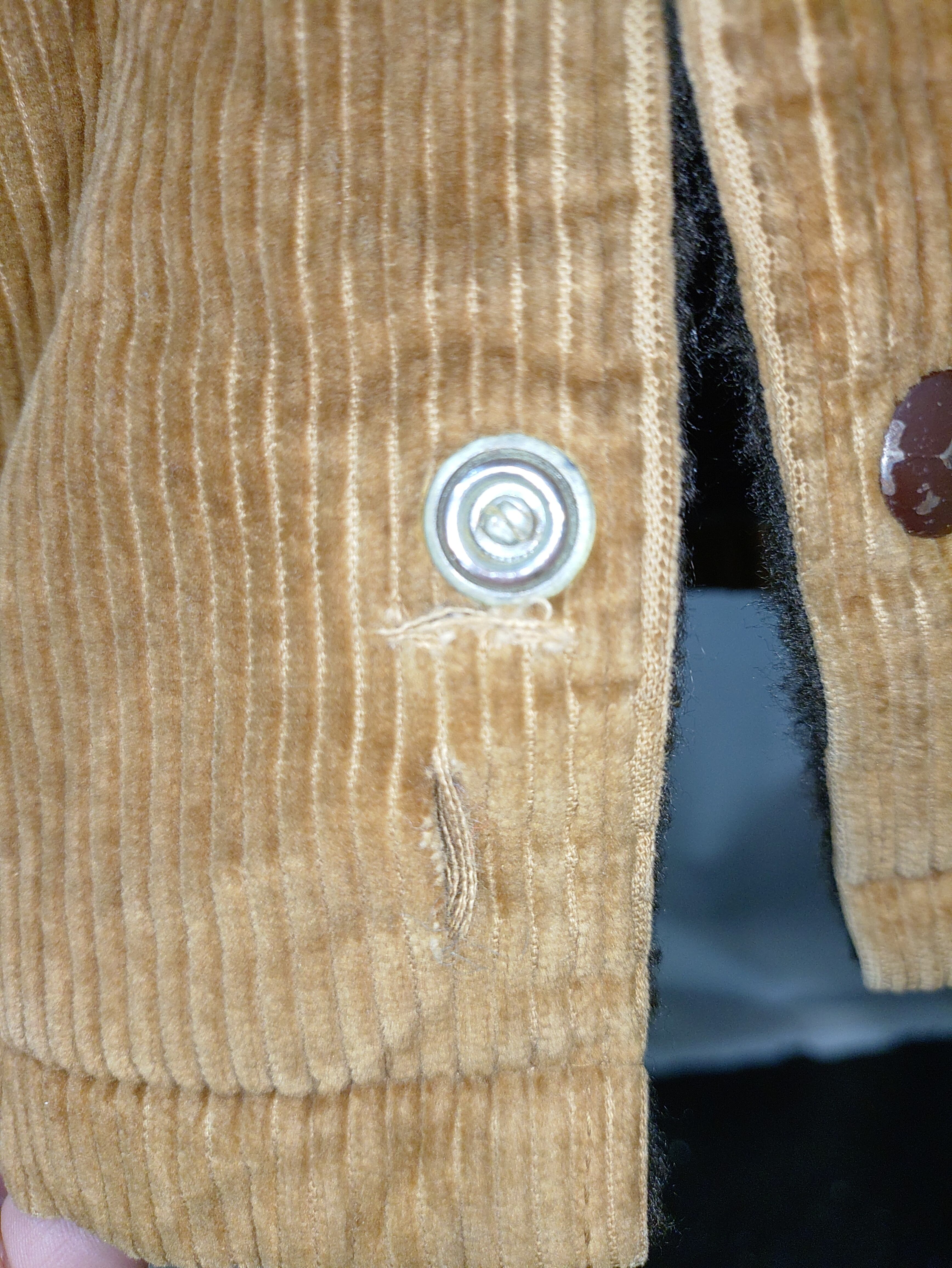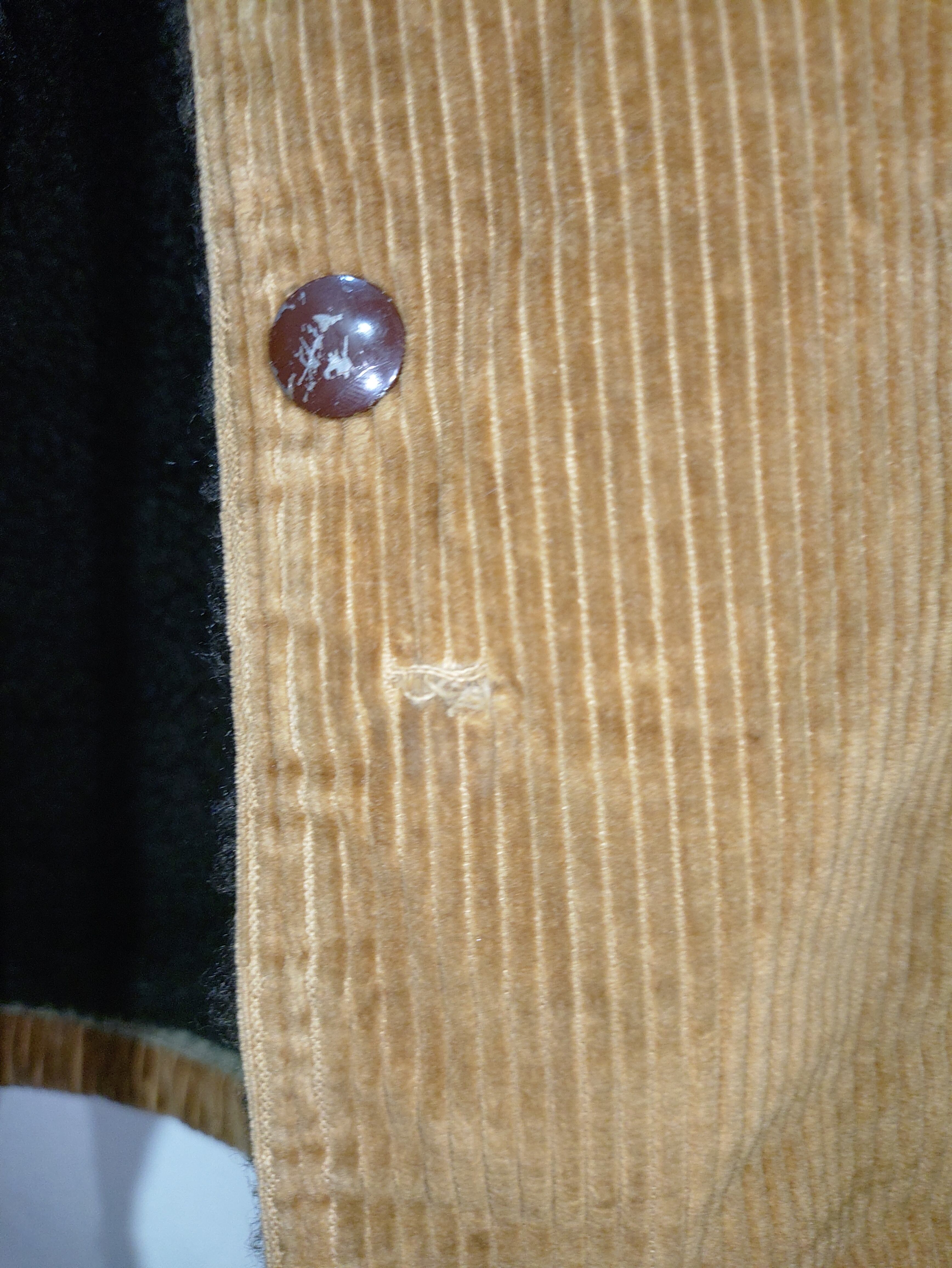 NFLでも採用されていたJ.P.Stevens社(Stevens Fabrics/1813年創業)のLinebacker Fabricという生地が使用され、表面は太畝のコーデュロイ生地、裏面のボア(袖裏はキルティング)もダメージなく暖かそうです。