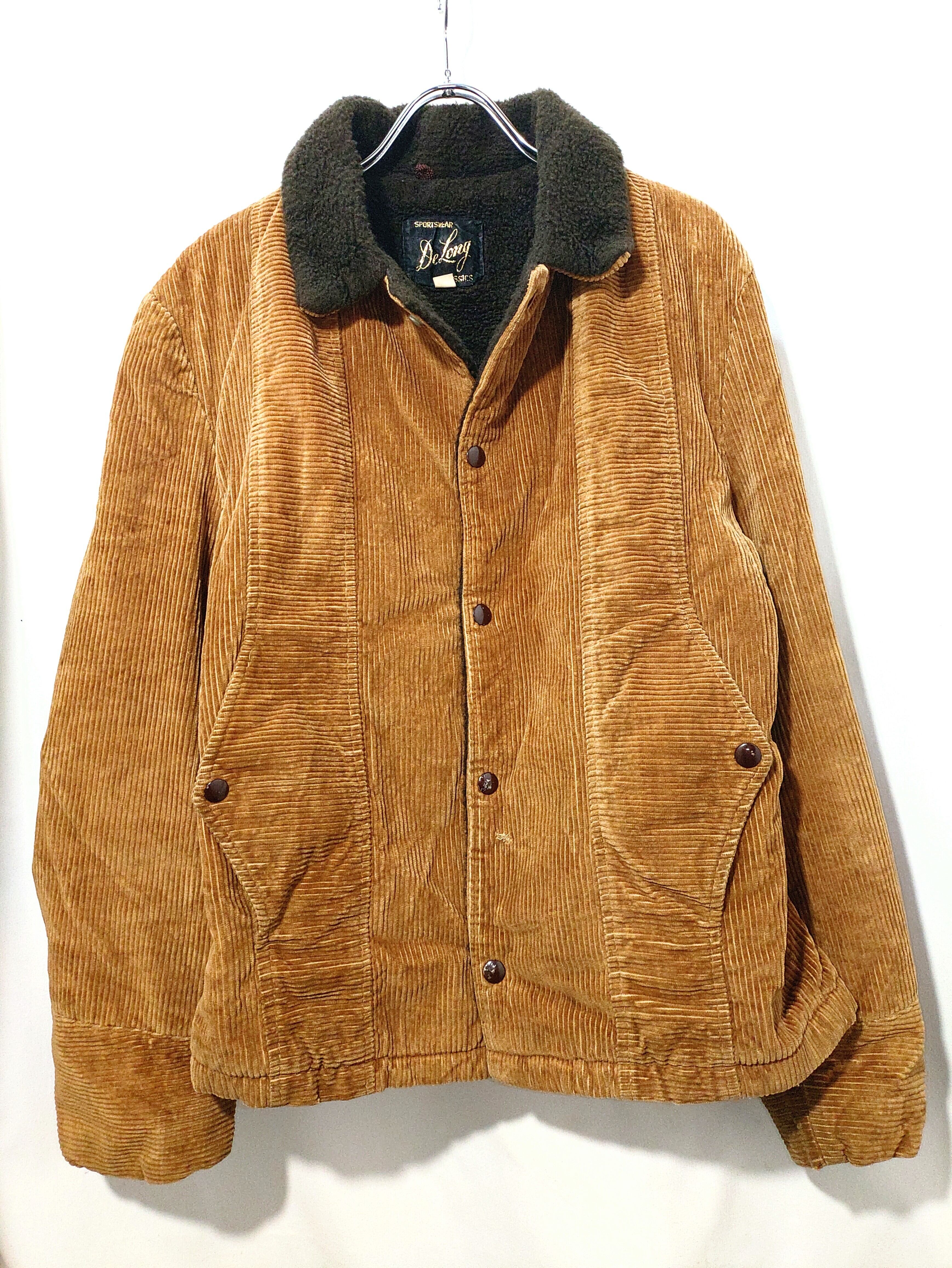 ブラックベースに金刺繍の筆記体でデザインされた60年代初期の頃のタグが付いたデロングの裏ボア付きコーデュロイジャケットです。