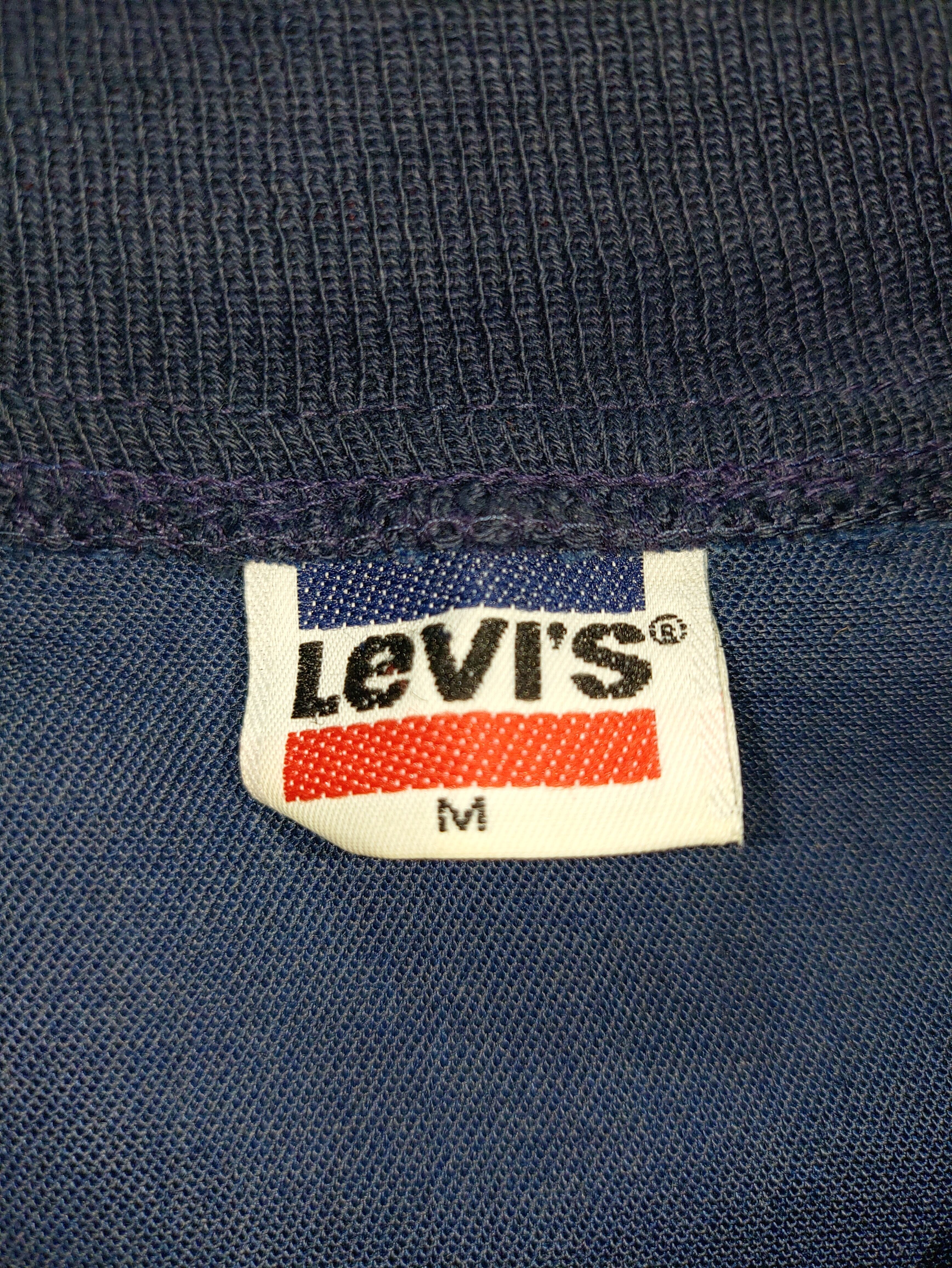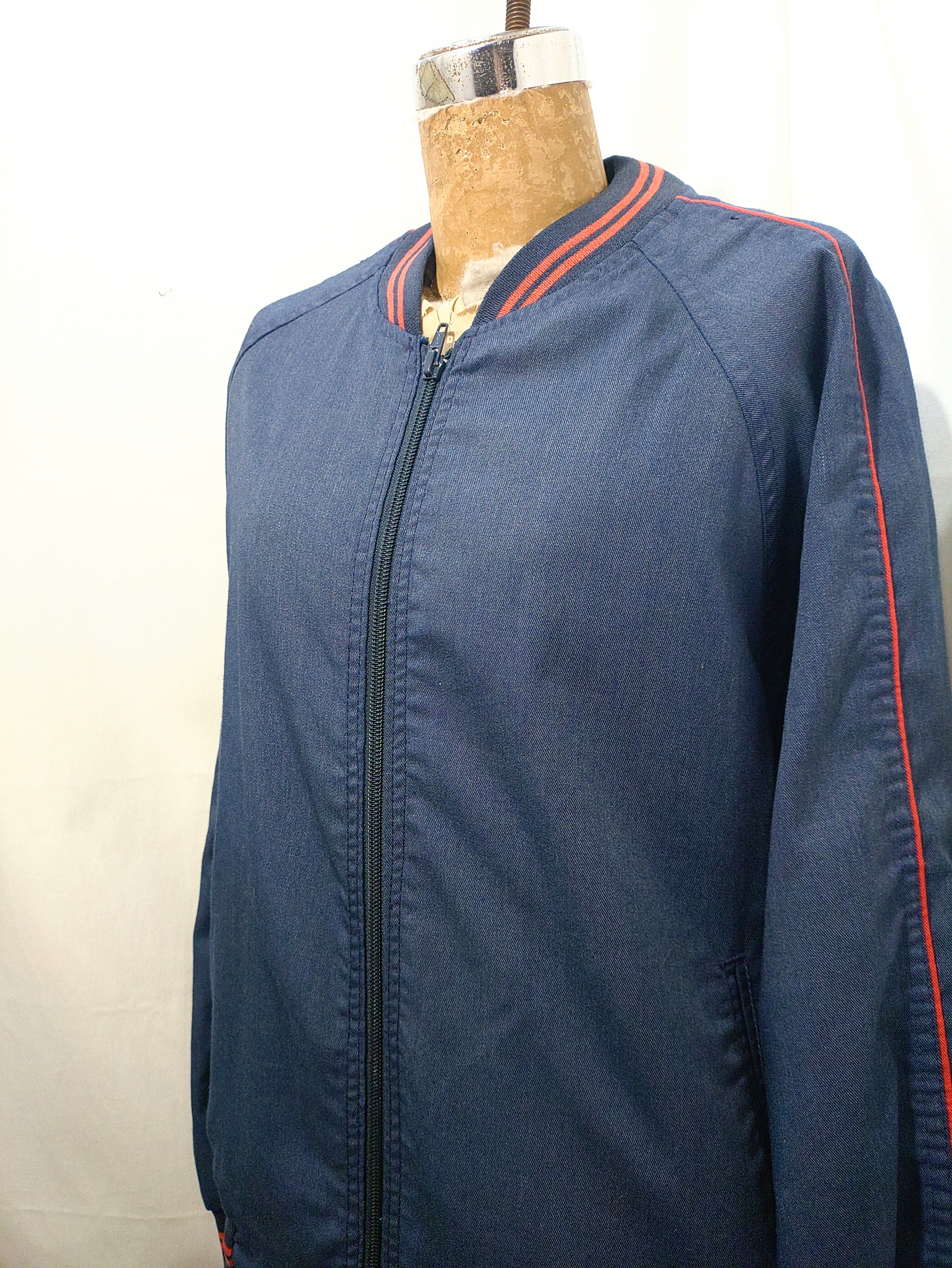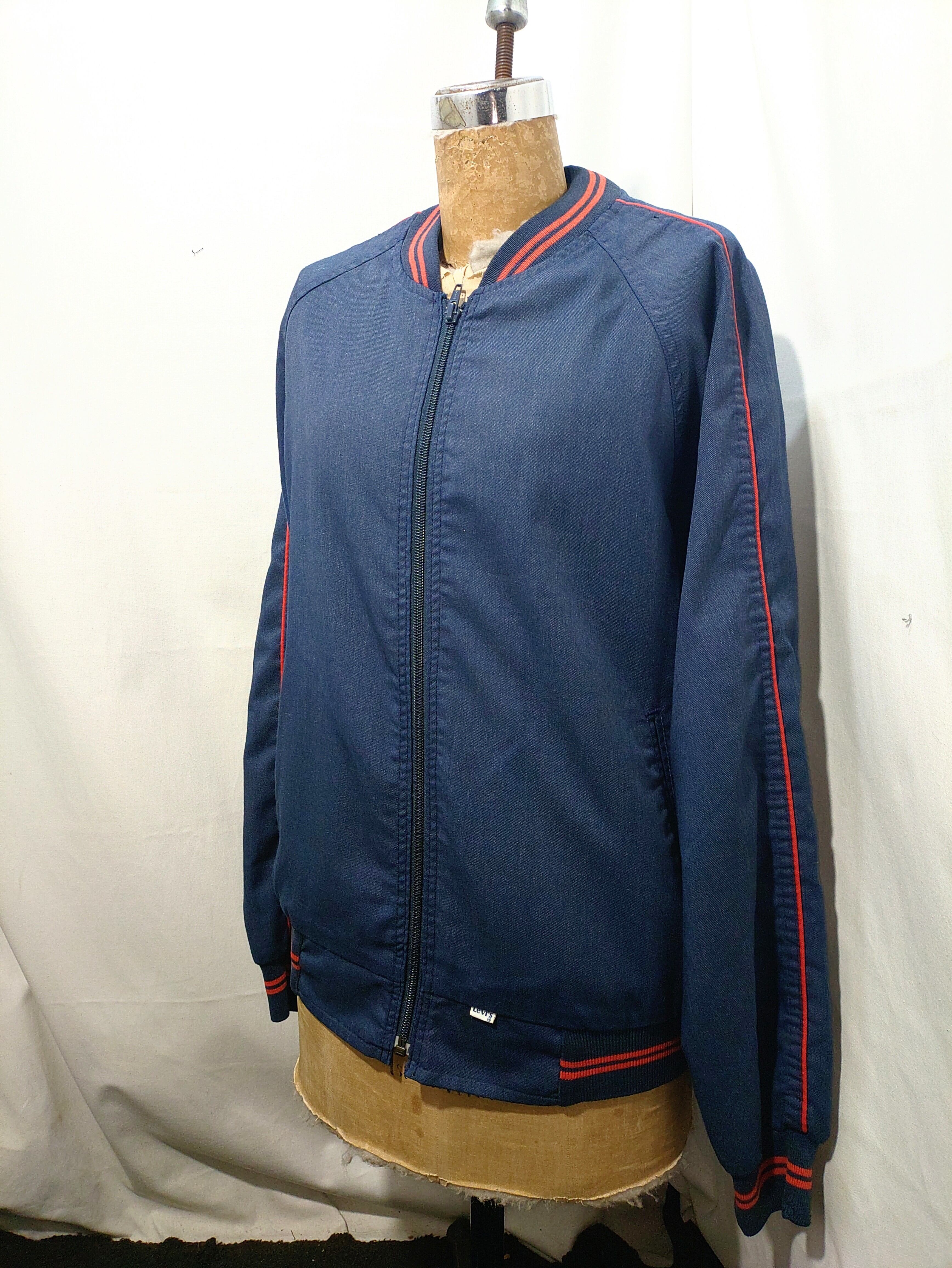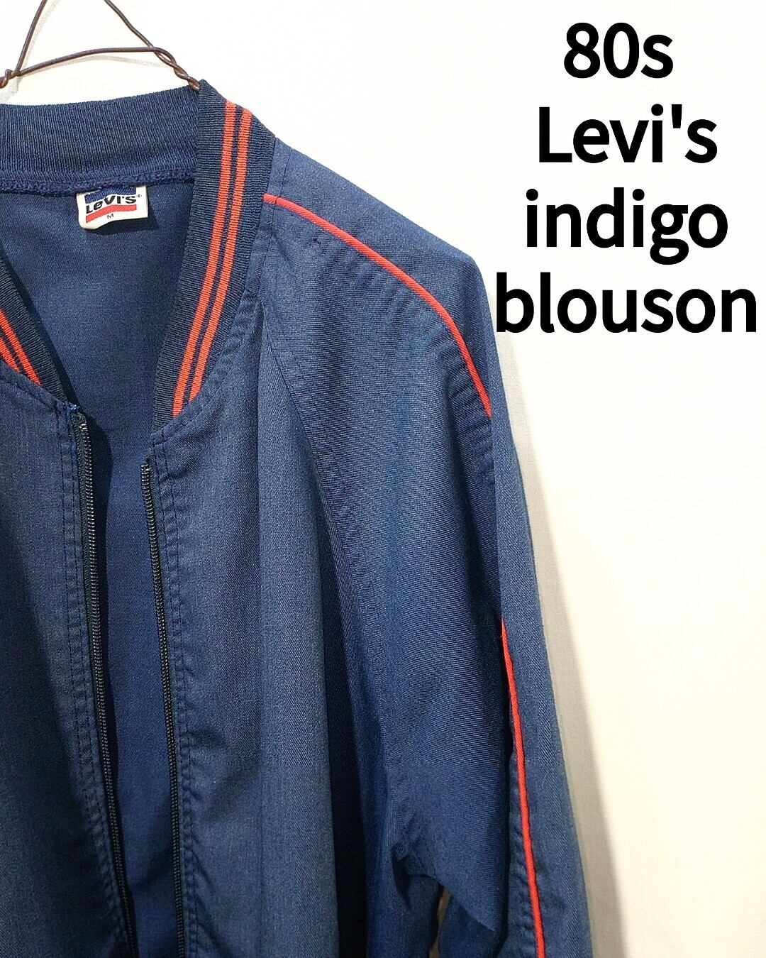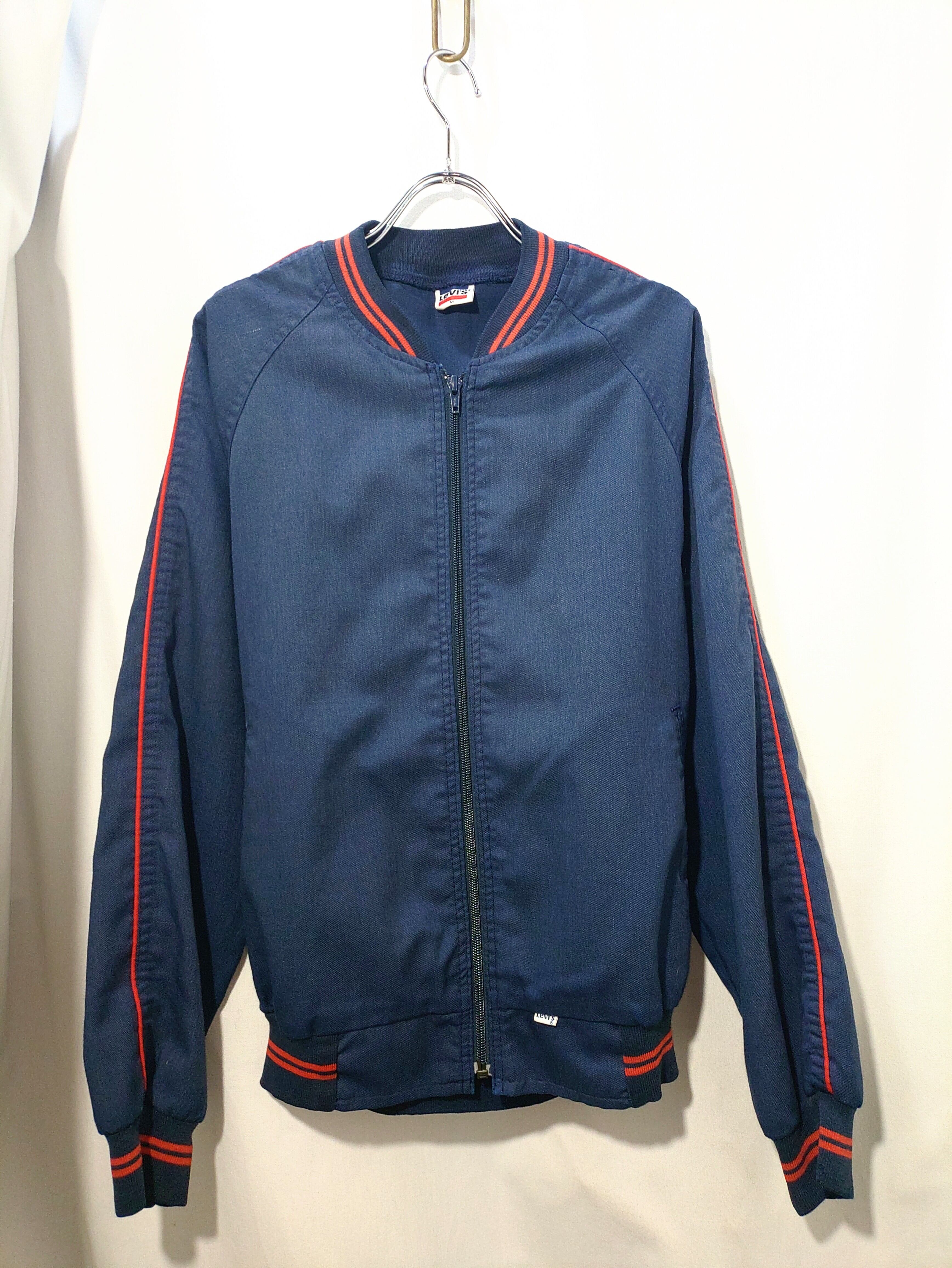 リーバイスらしいインディゴカラーのライトオンスなコットン×ポリのブルゾンで、肩から袖にかけて入った赤いラインと首、袖、ウェストのリブに入った赤いライン特徴的なシンプルながらに実にリーバイスらしいデザイン。
