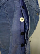 ジップはフレンチワークでよくみかけるECLAIR社、ボタンは月桂樹ボタンが使用されています。
