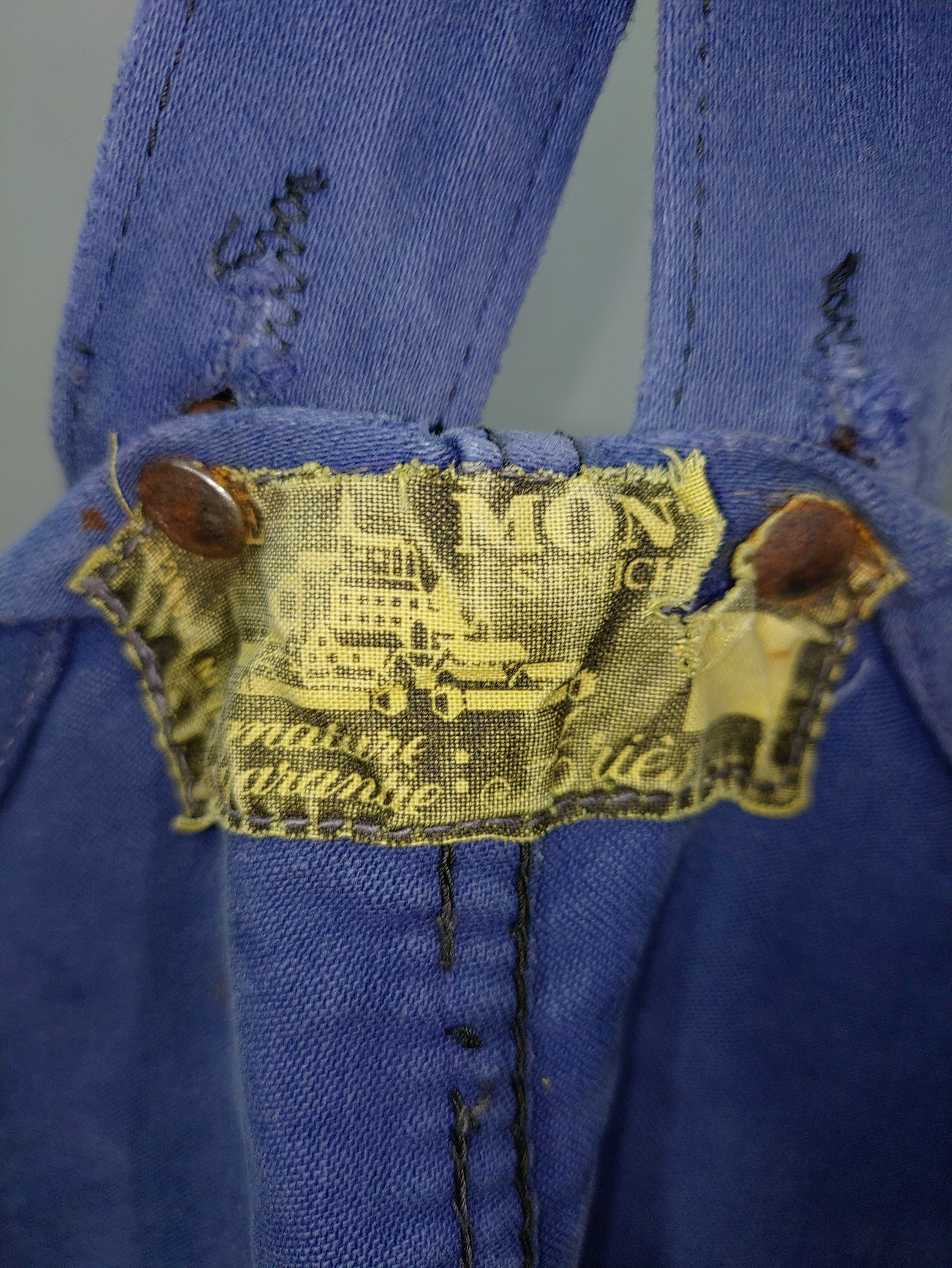 Vintage Le Mont st Michel blue moleskin work overalls 50s
